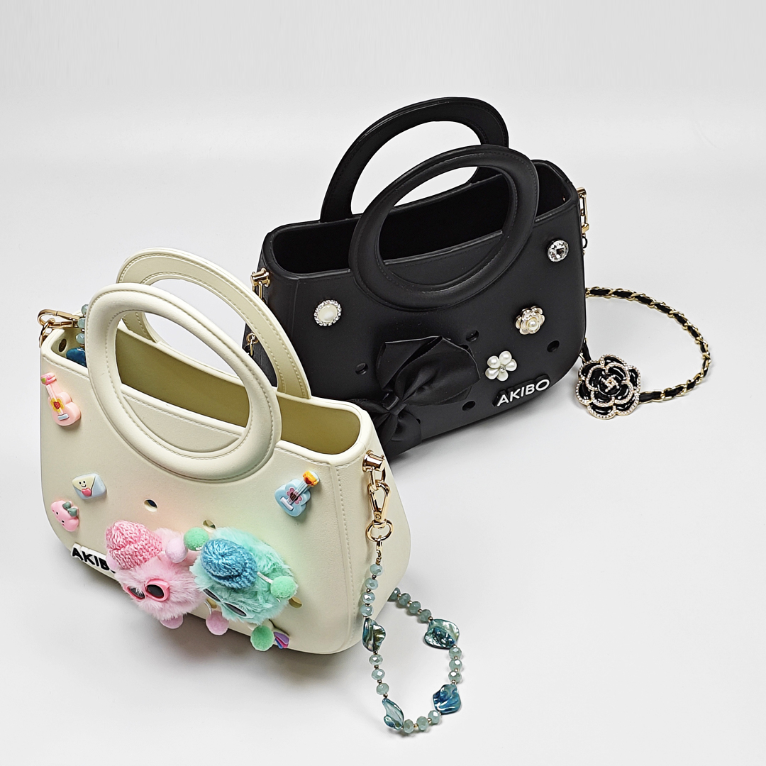 【買1送1】AKIBO滿月包-經典黑/波西米亞彩珠背帶(肩背手提洞洞包。中性款、輕量、防水) / 內附AKIBO品牌鞋扣1個。現在買再送鞋扣組(不挑款)
