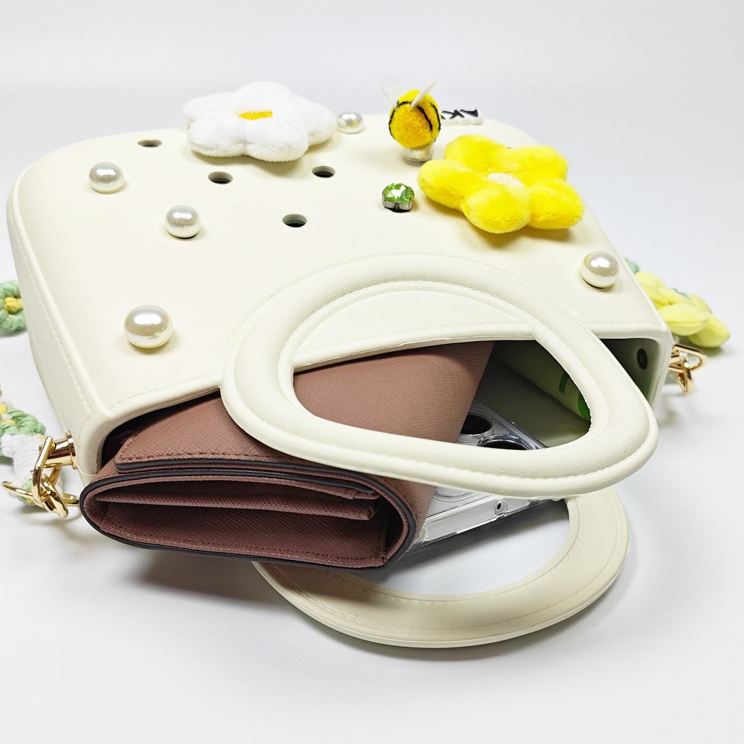 【買1送1】AKIBO滿月包-奶油白/波西米亞彩珠背帶(肩背手提洞洞包。中性款、輕量、防水) / 內附AKIBO品牌鞋扣1個。現在買再送鞋扣組(不挑款)