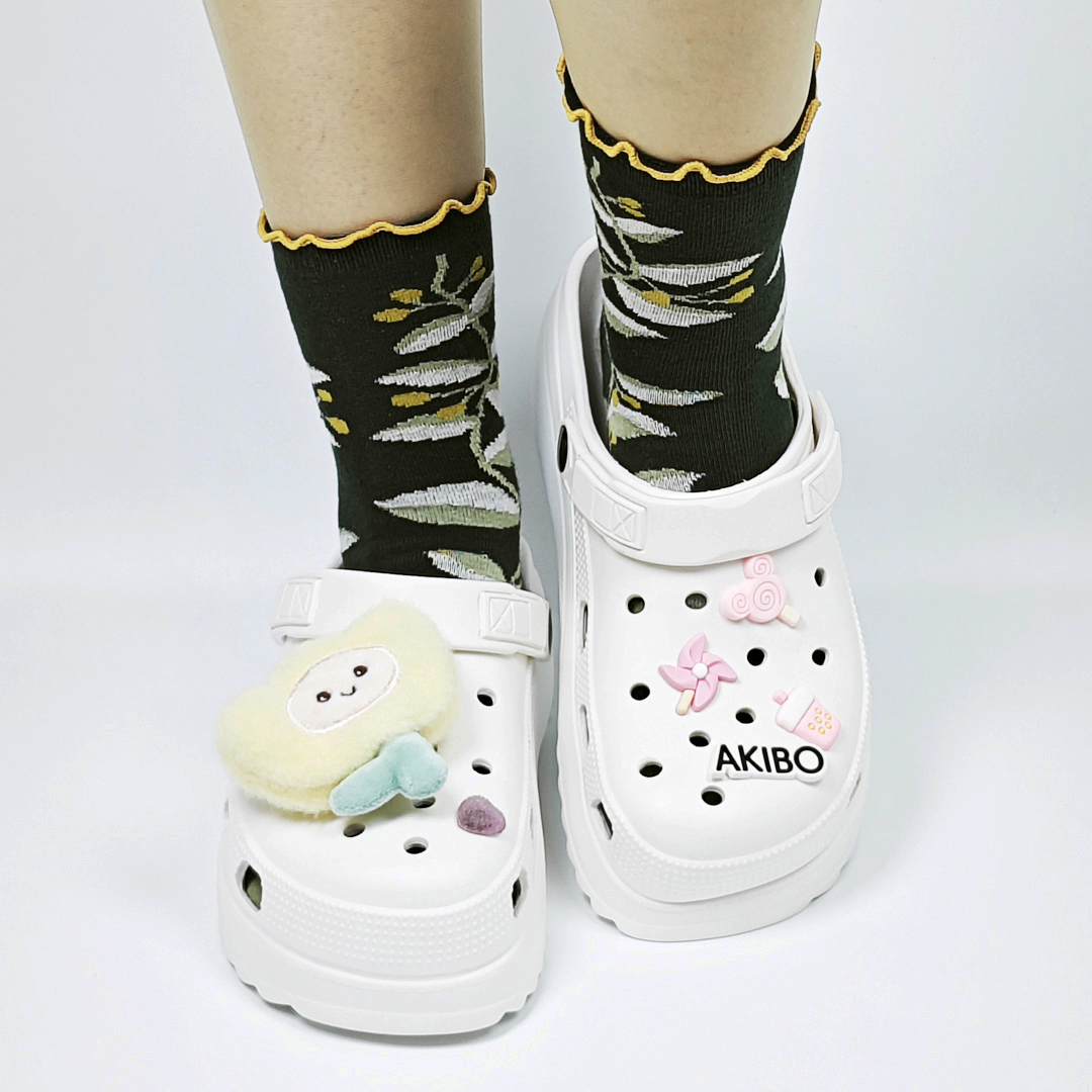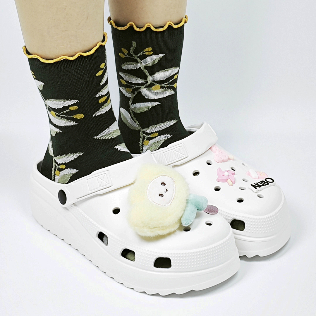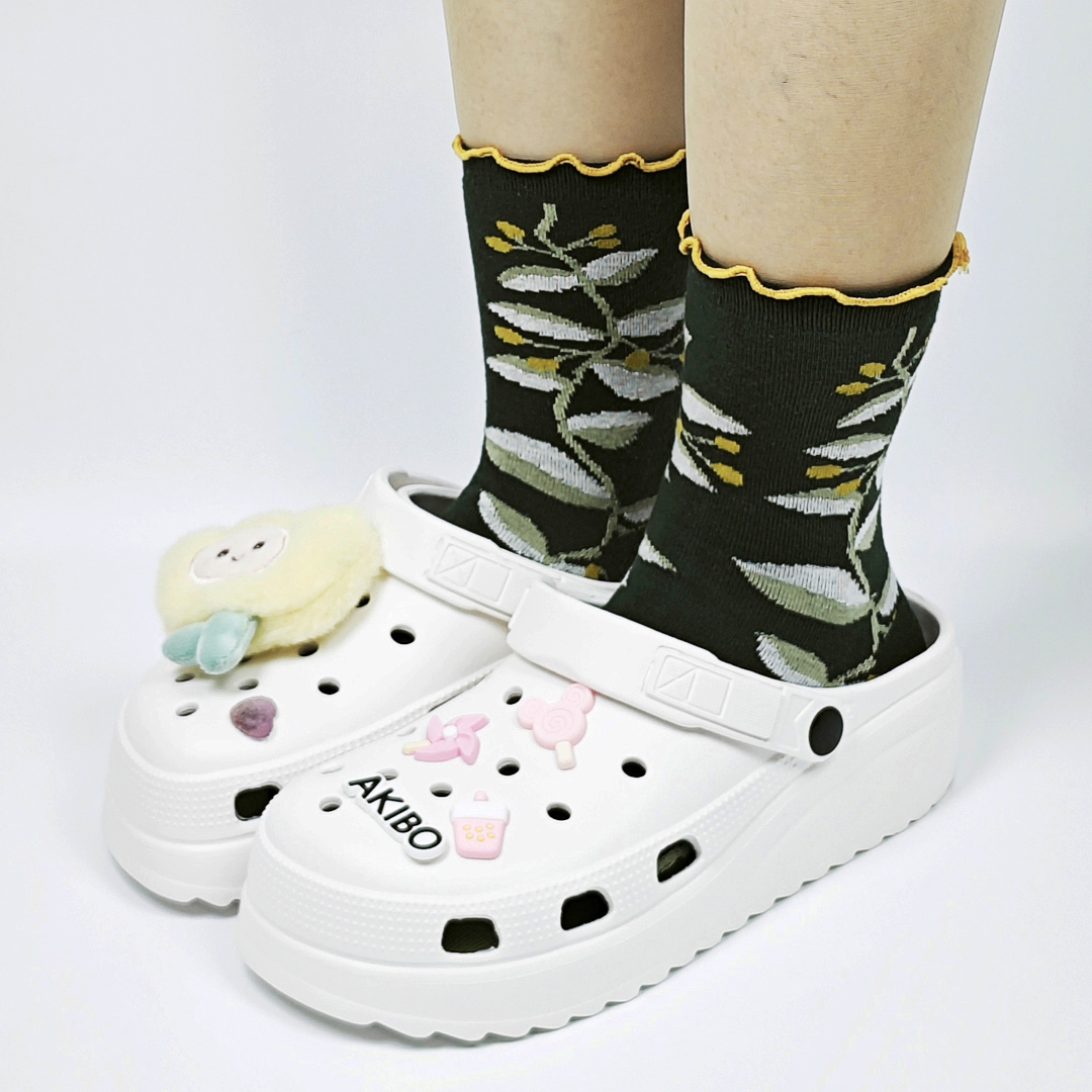 AKIBO森系春木花語中筒襪(三件組)-女款