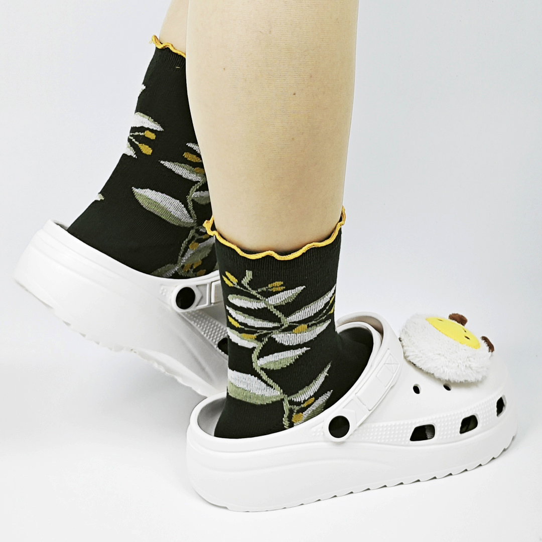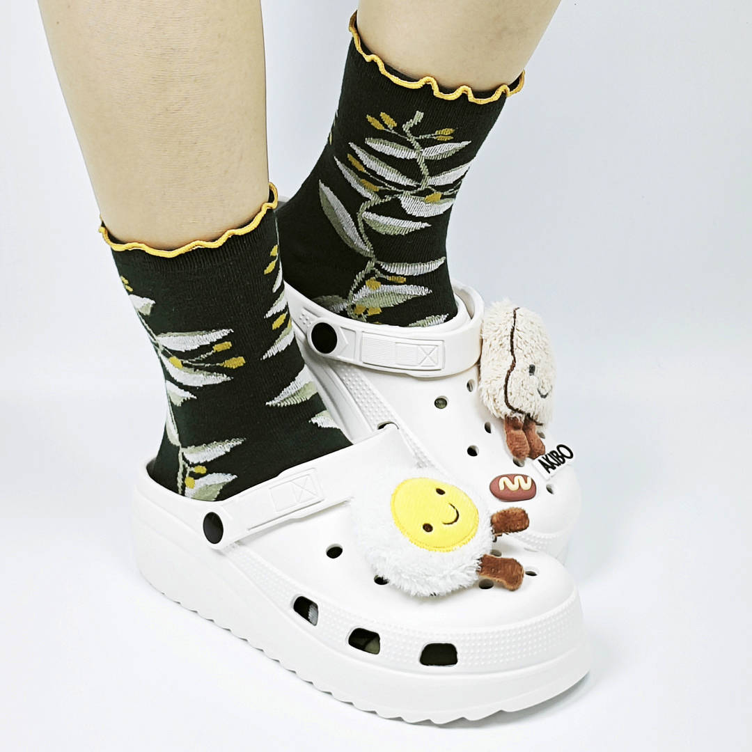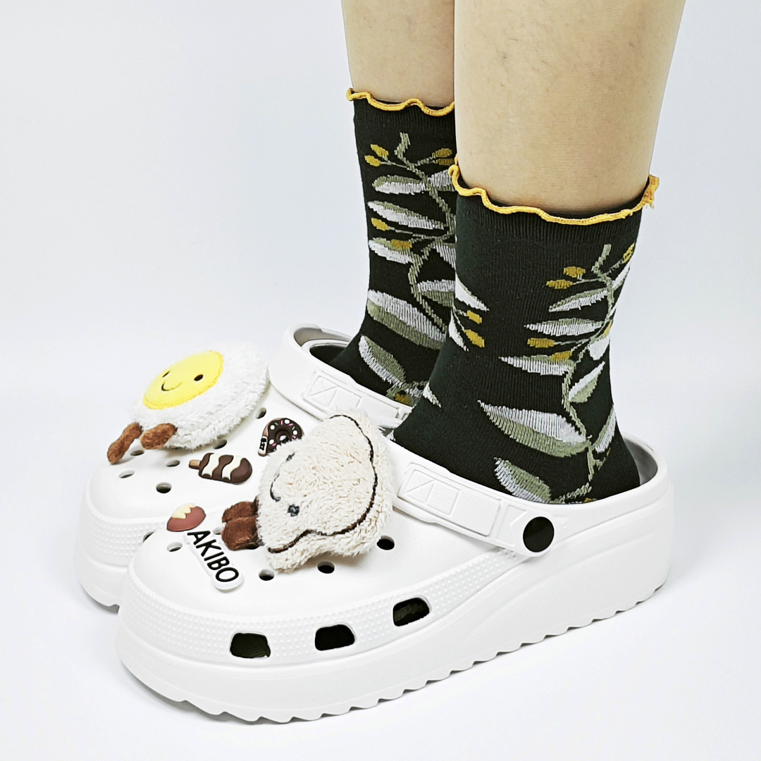 AKIBO森系春木花語中筒襪(三件組)-女款