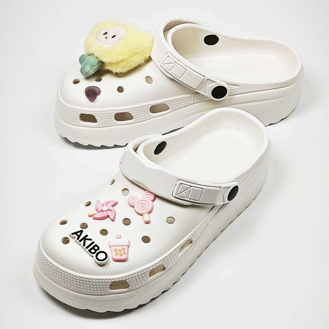 【買1送1】AKIBO餅乾洞洞鞋(二代)-牛奶白(中性款、輕量、耐走、兩穿、防水) / 內附AKIBO品牌鞋扣1個。現在買再送鞋扣組(不挑款)