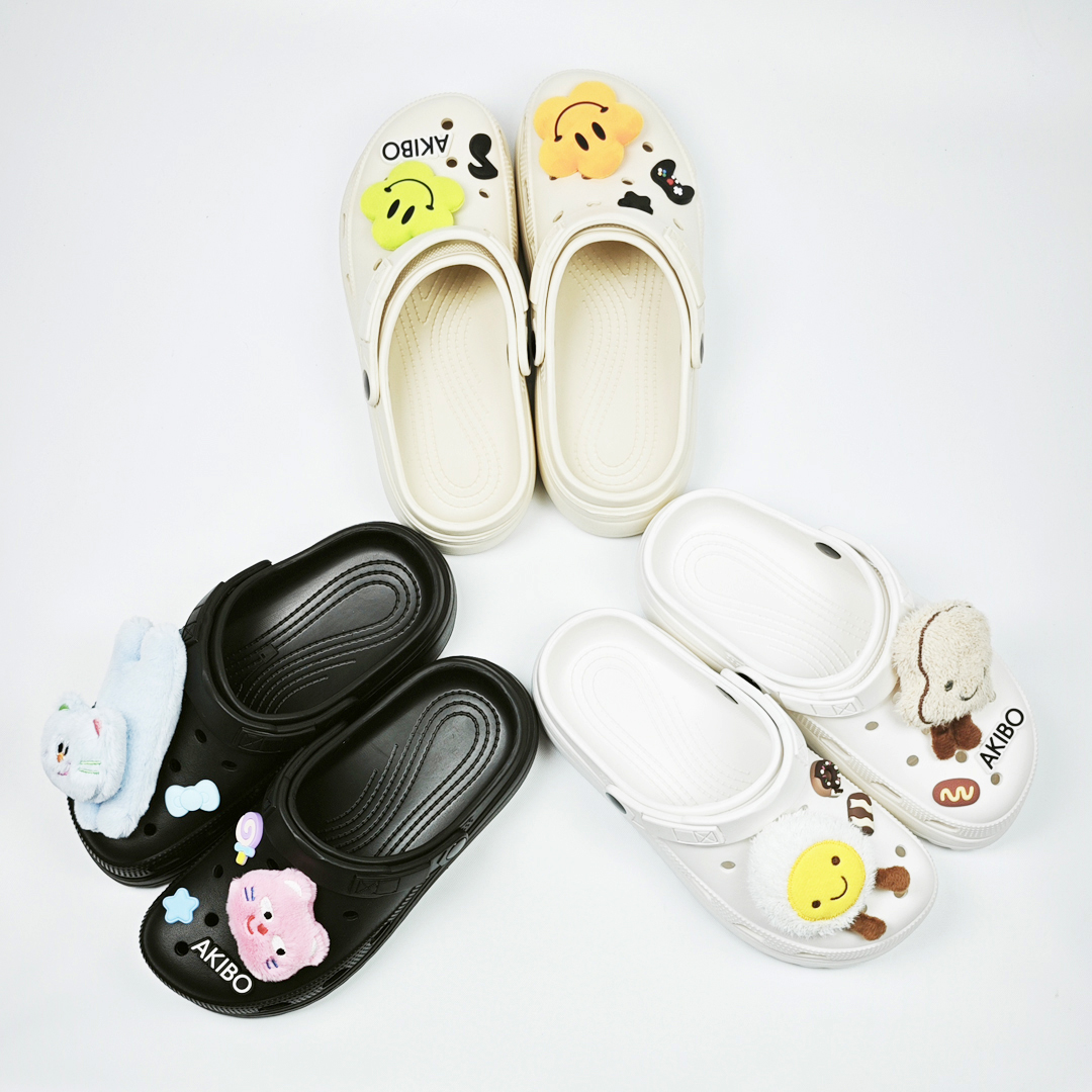 【買1送1】AKIBO布丁洞洞鞋-經典黑(女款、寬楦、雲朵感、輕量、耐走、防水) / 內附AKIBO品牌鞋扣1個。現在買再送鞋扣組(不挑款)