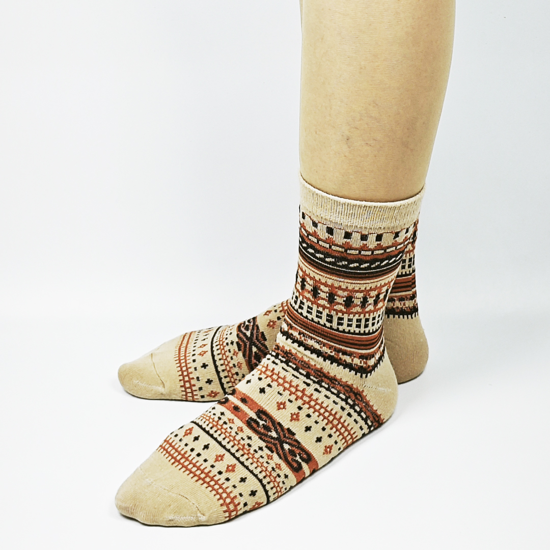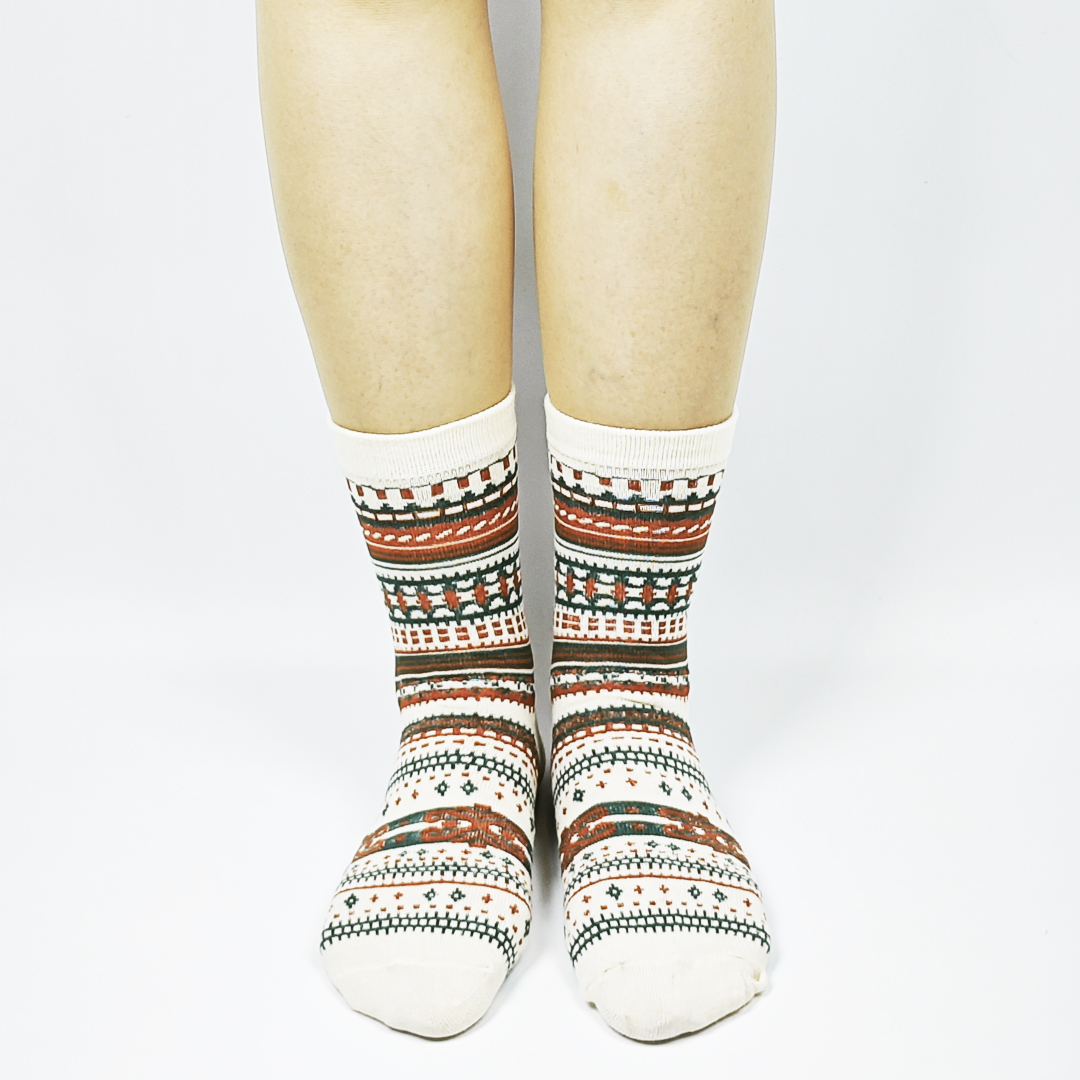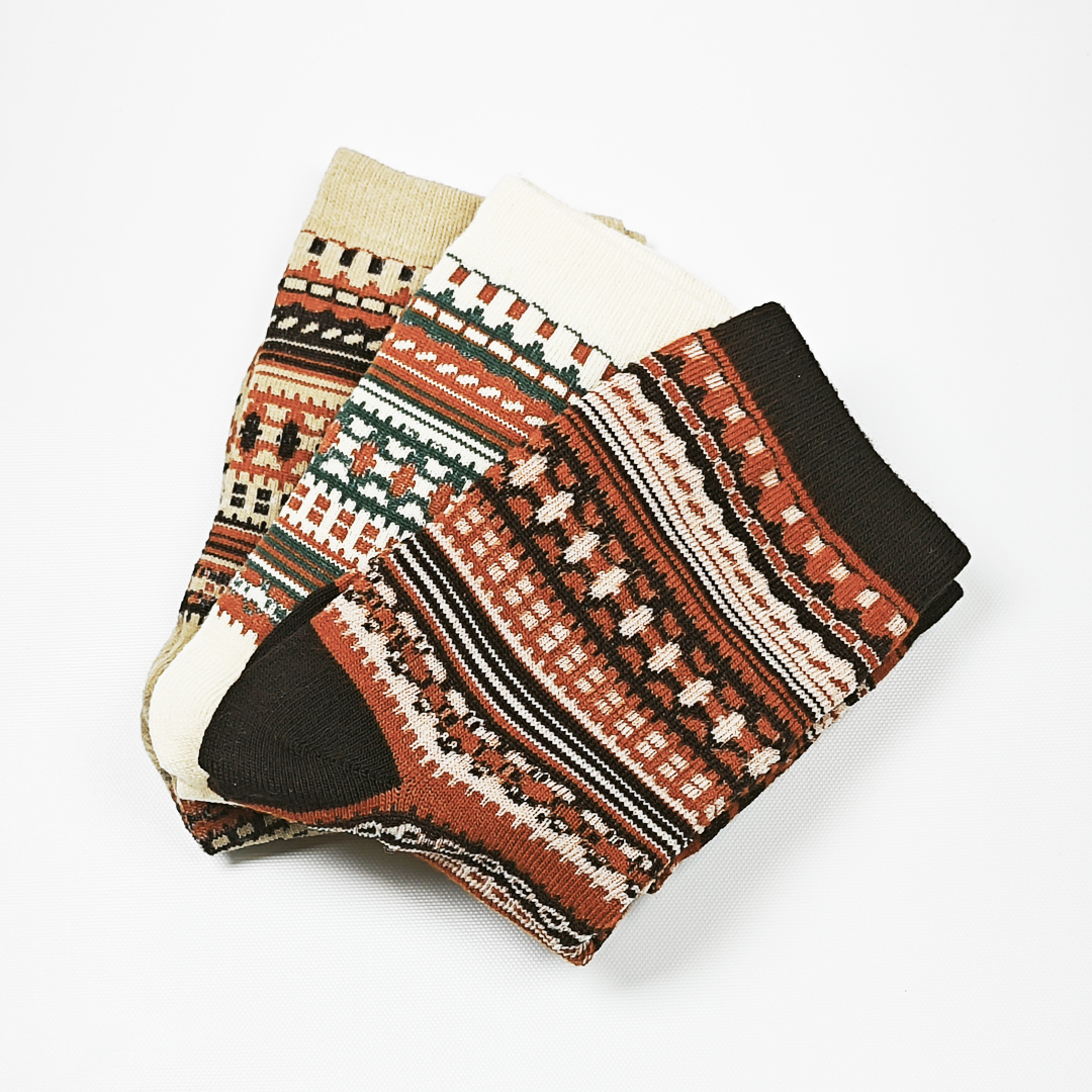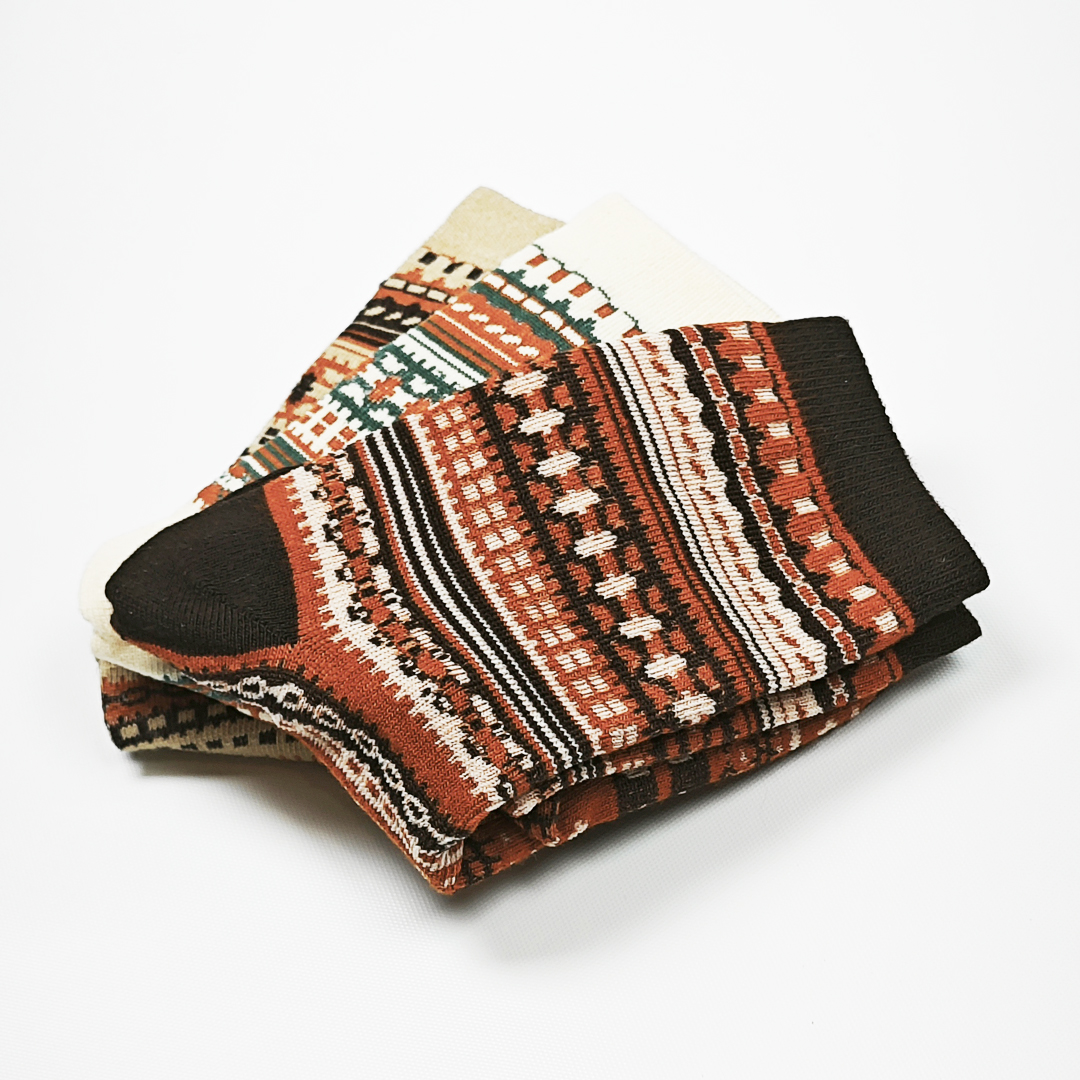 AKIBO民族風織紋中筒襪(三件組)-中性款