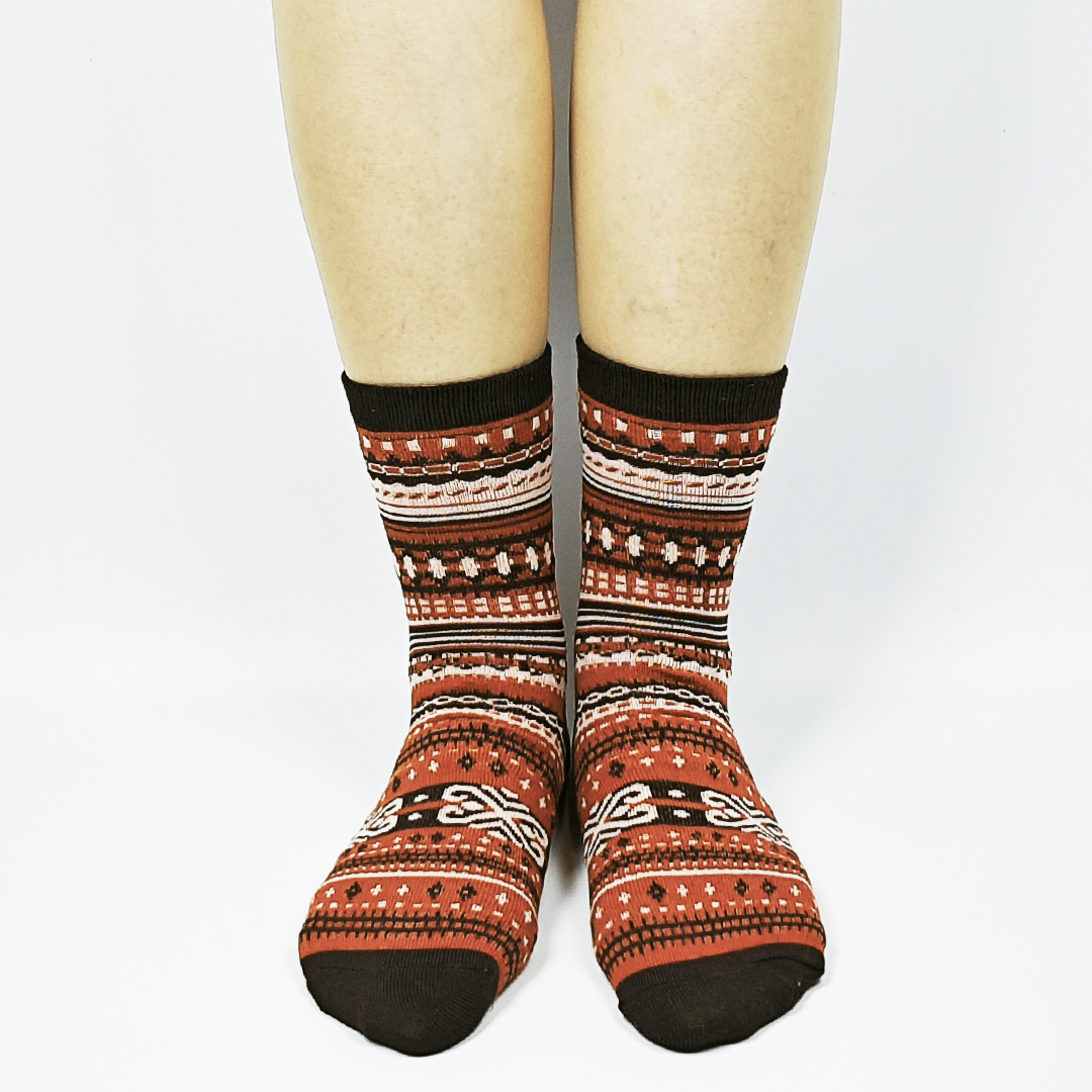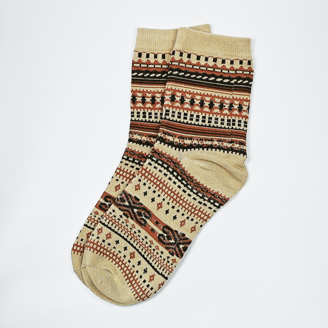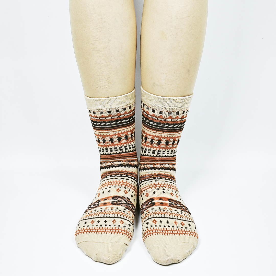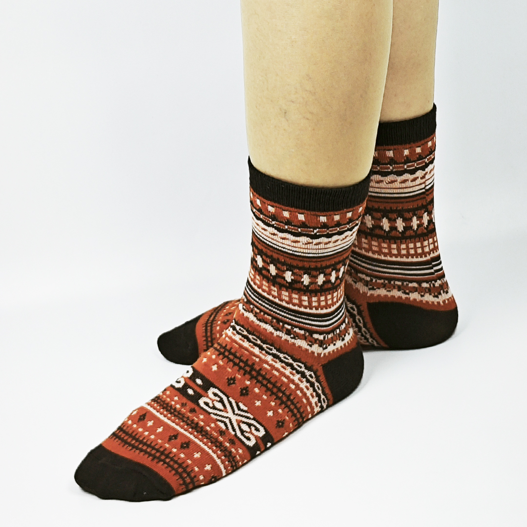 AKIBO民族風織紋中筒襪(三件組)-中性款