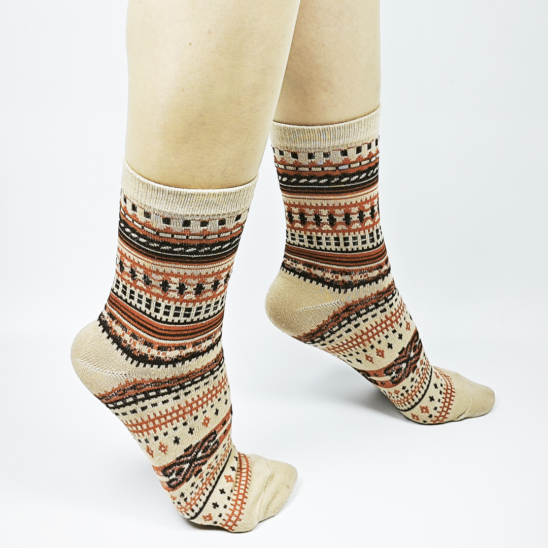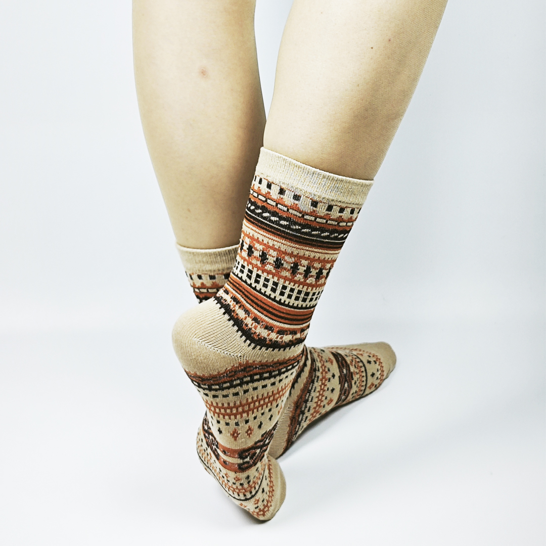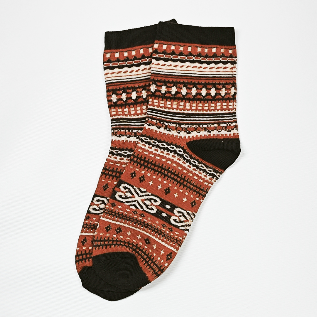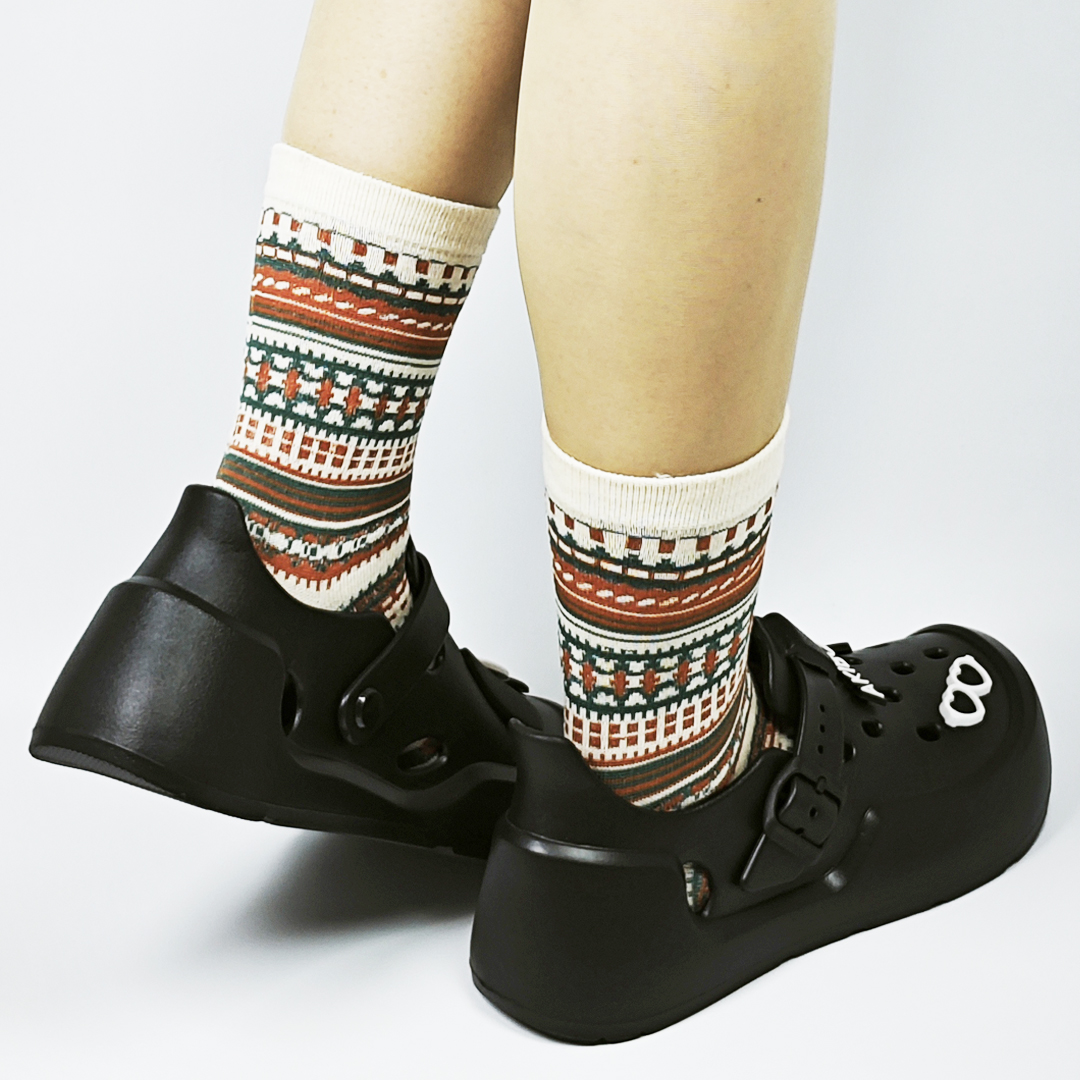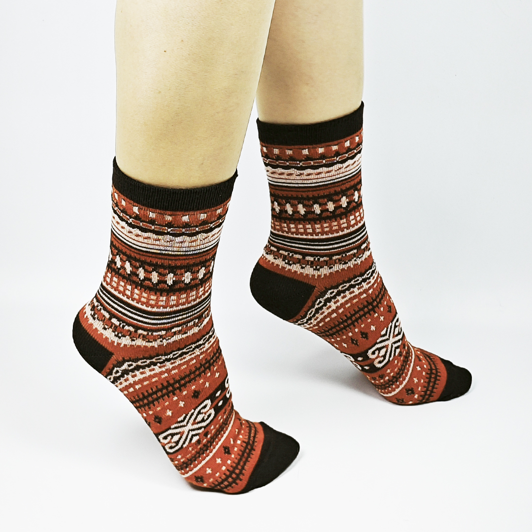 AKIBO民族風織紋中筒襪(三件組)-中性款