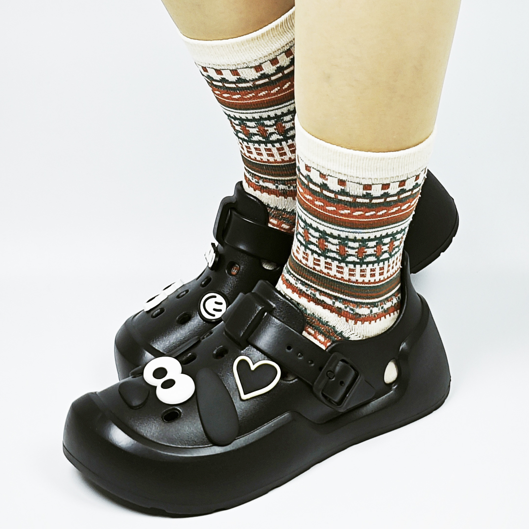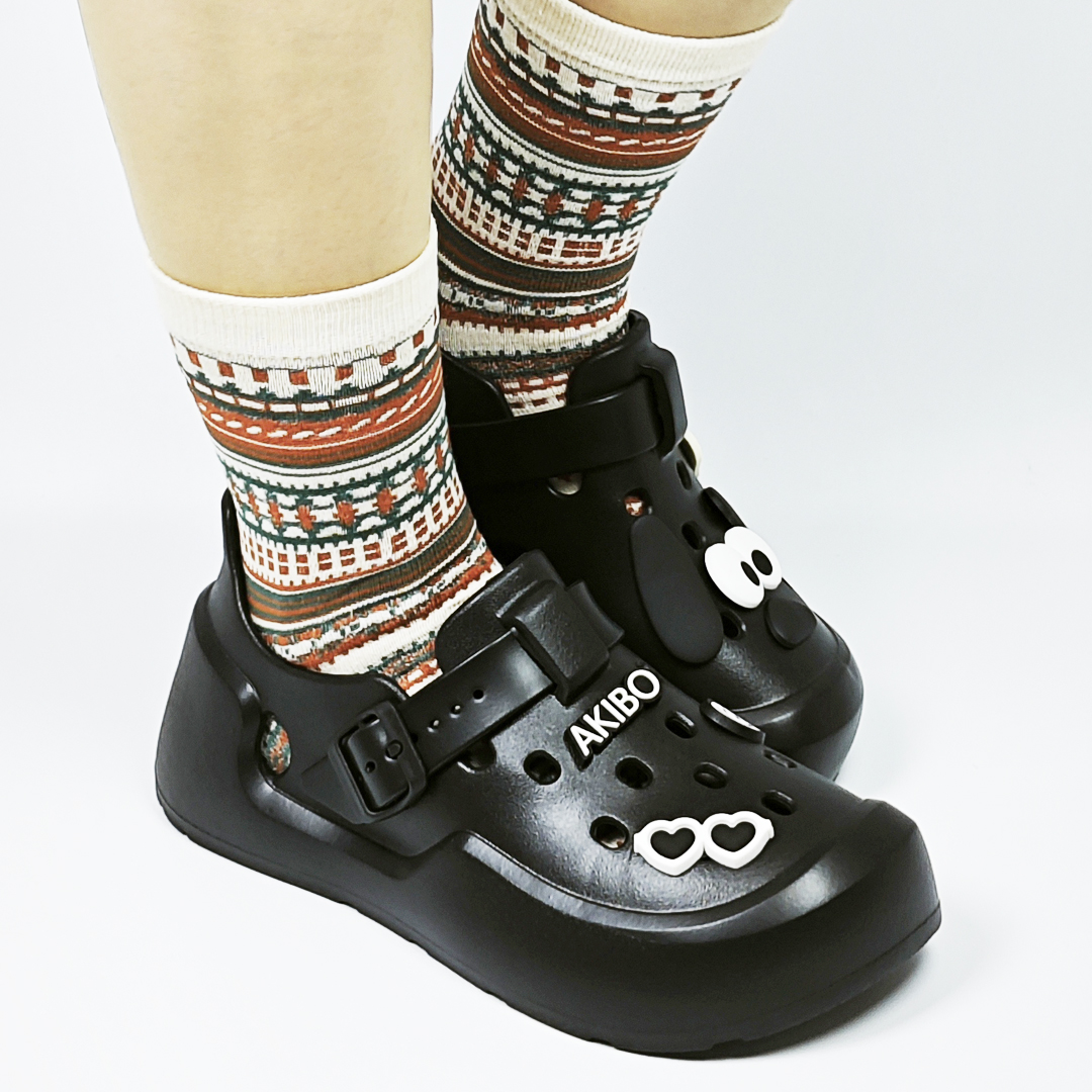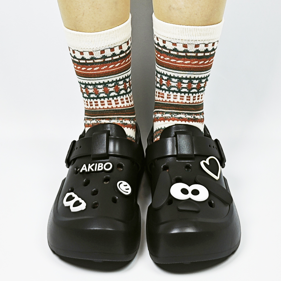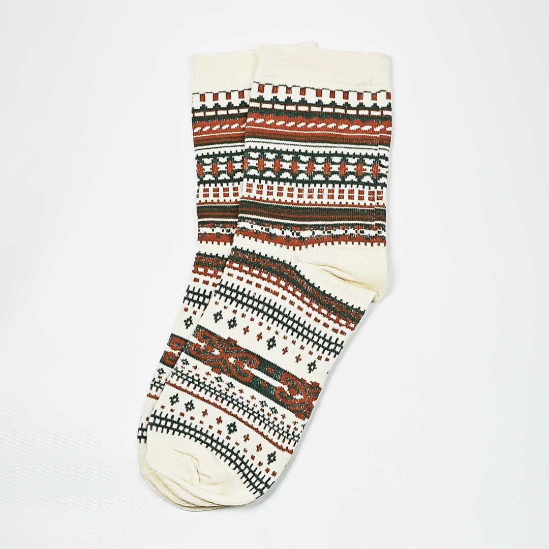 AKIBO民族風織紋中筒襪(三件組)-中性款