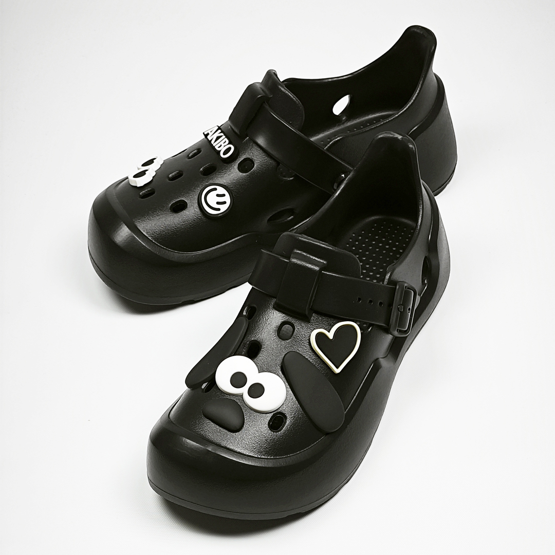 【買1送1】AKIBO全方位機能洞洞鞋-經典黑(中性款、雲朵感、輕量、防水) / 內附AKIBO品牌鞋扣1個。現在買再送鞋扣組(不挑款)