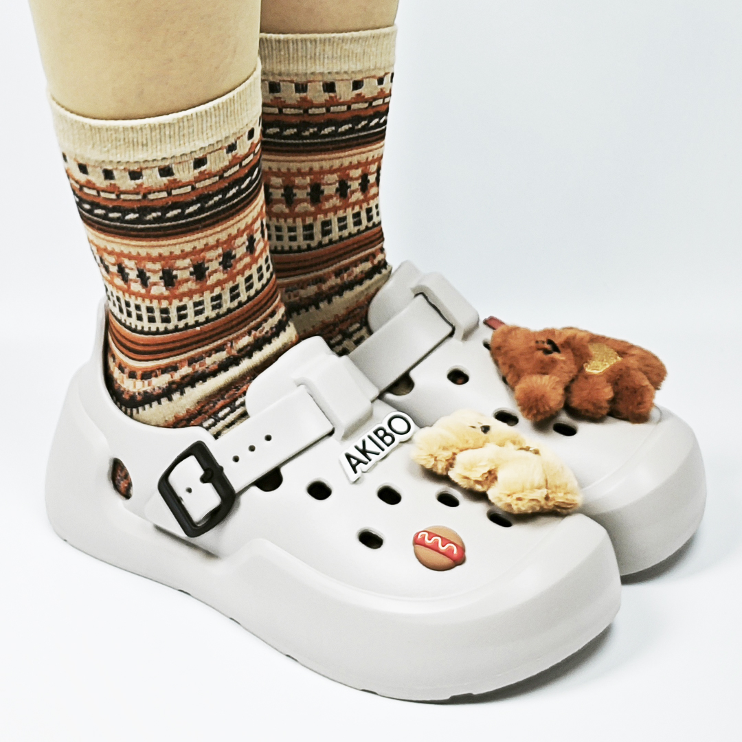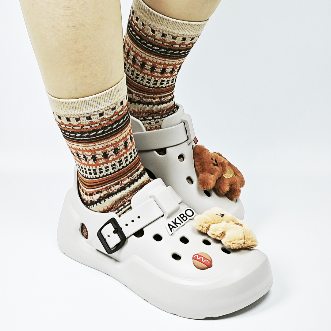 AKIBO民族風織紋中筒襪(三件組)-中性款