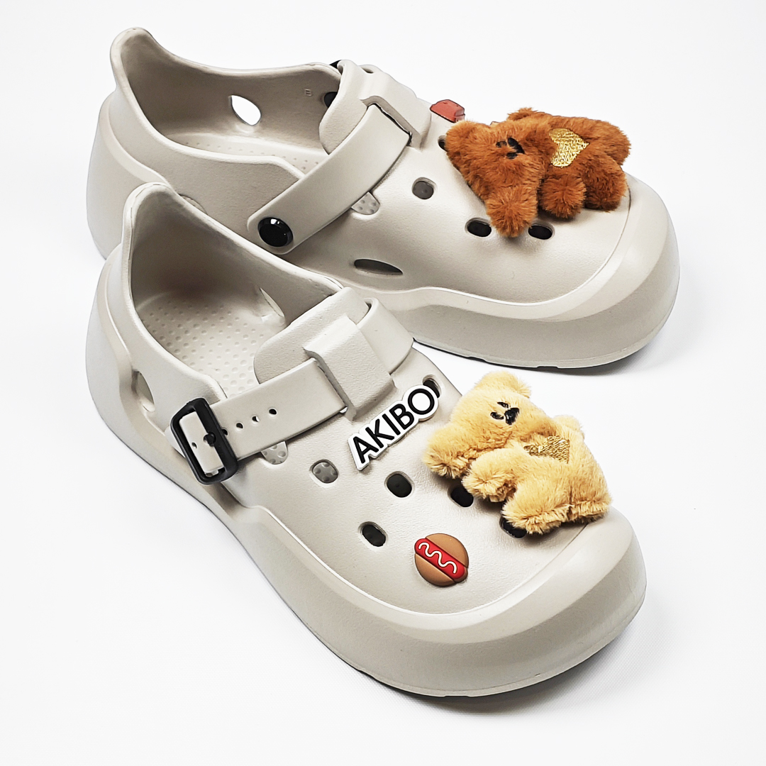 【買1送1】AKIBO戶外機能洞洞鞋-奶茶(中性款、寬楦、雲朵感、輕量、兩穿、防水) / 內附AKIBO品牌鞋扣1個。現在買再送鞋扣組(不挑款)