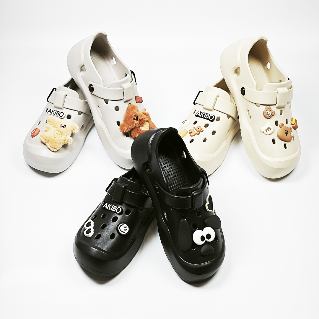 【買1送1】AKIBO小木偶洞洞鞋-經典黑(中性款、5公分厚底增高、寬楦、輕量、兩穿、防水) / 內附AKIBO品牌鞋扣1個。現在買再送鞋扣組(不挑款)