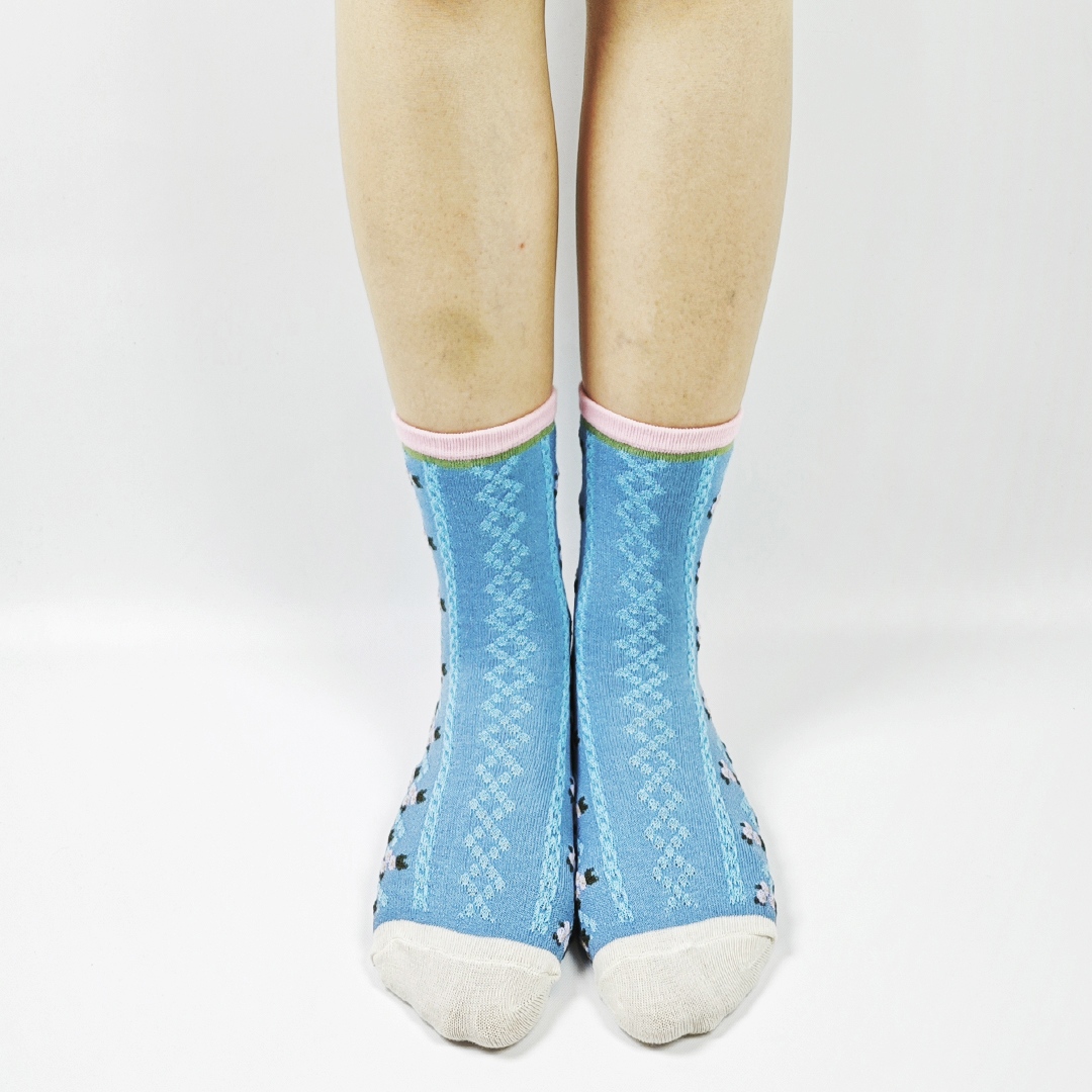 AKIBO韓系花漾中筒襪(三件組)-女款