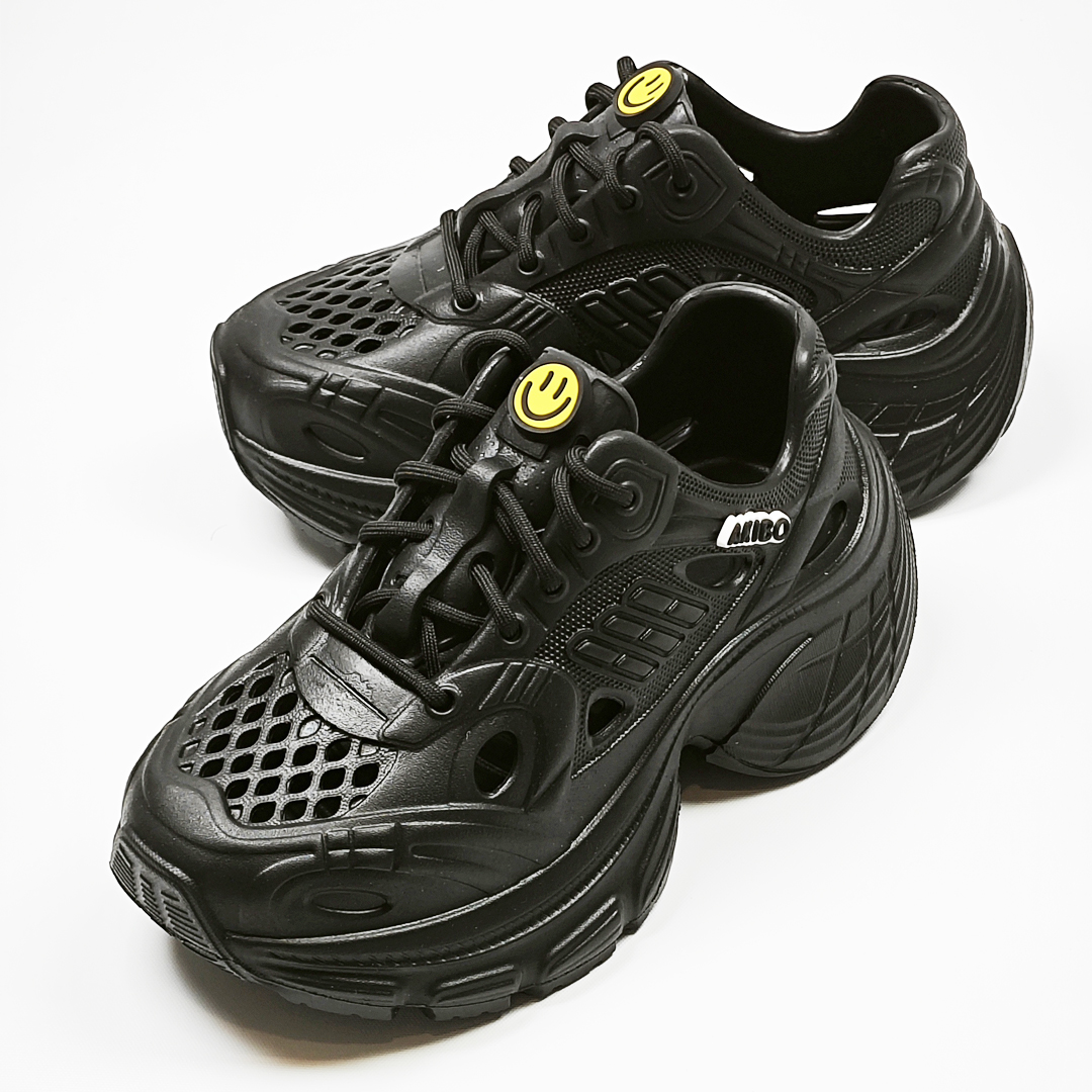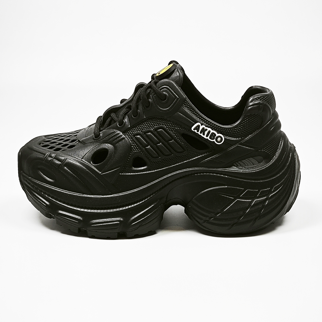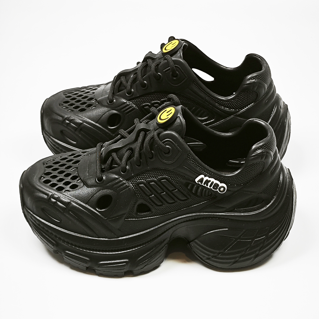 【買1送1】AKIBO輕量透氣老爹鞋-經典黑(女款、6公分厚底增高、一體成型、輕量、耐走、防水) / 內附AKIBO品牌鞋扣1個。現在買再送鞋扣組(不挑款)