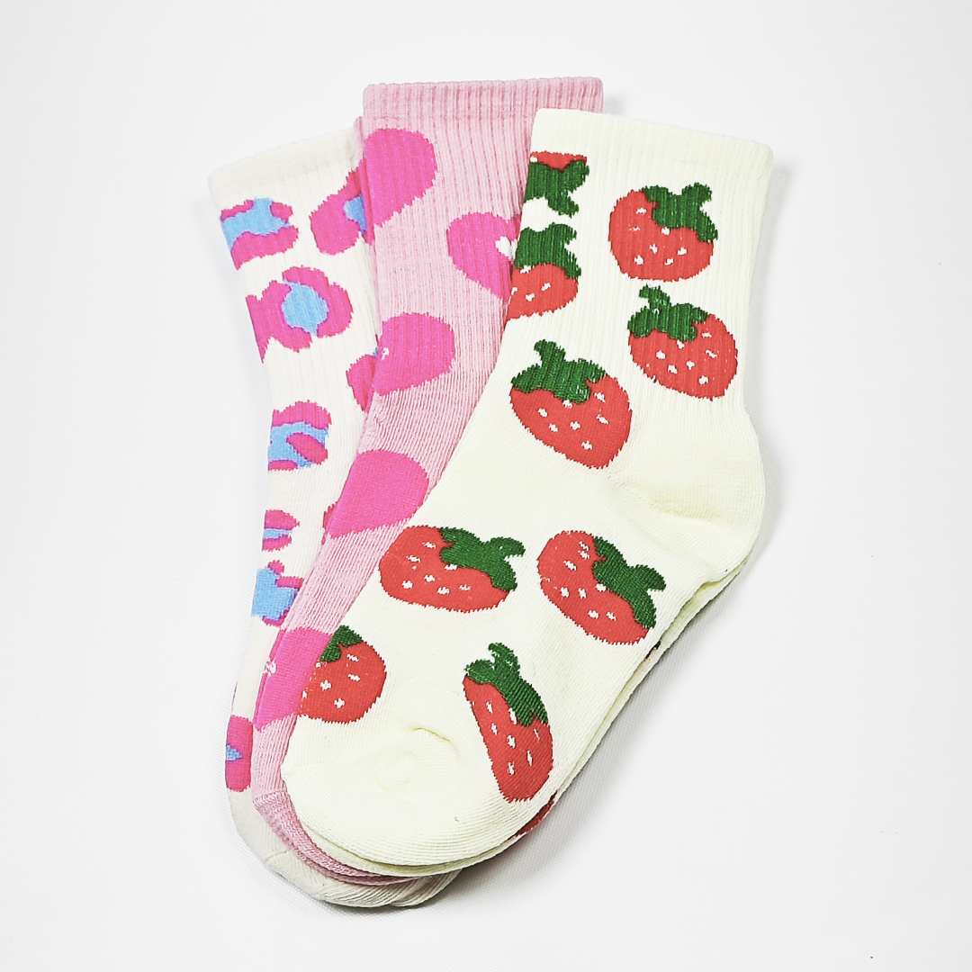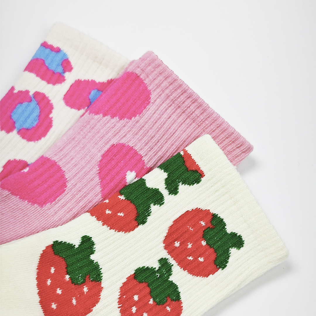 AKIBO粉漾甜心樂園中筒襪(三件組)-女款
