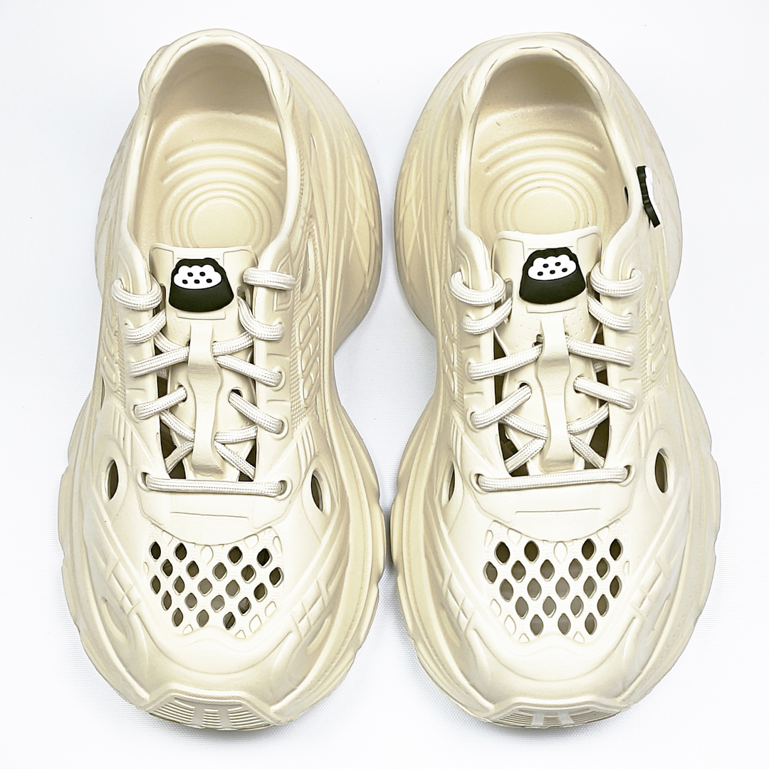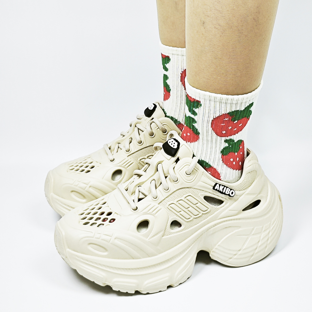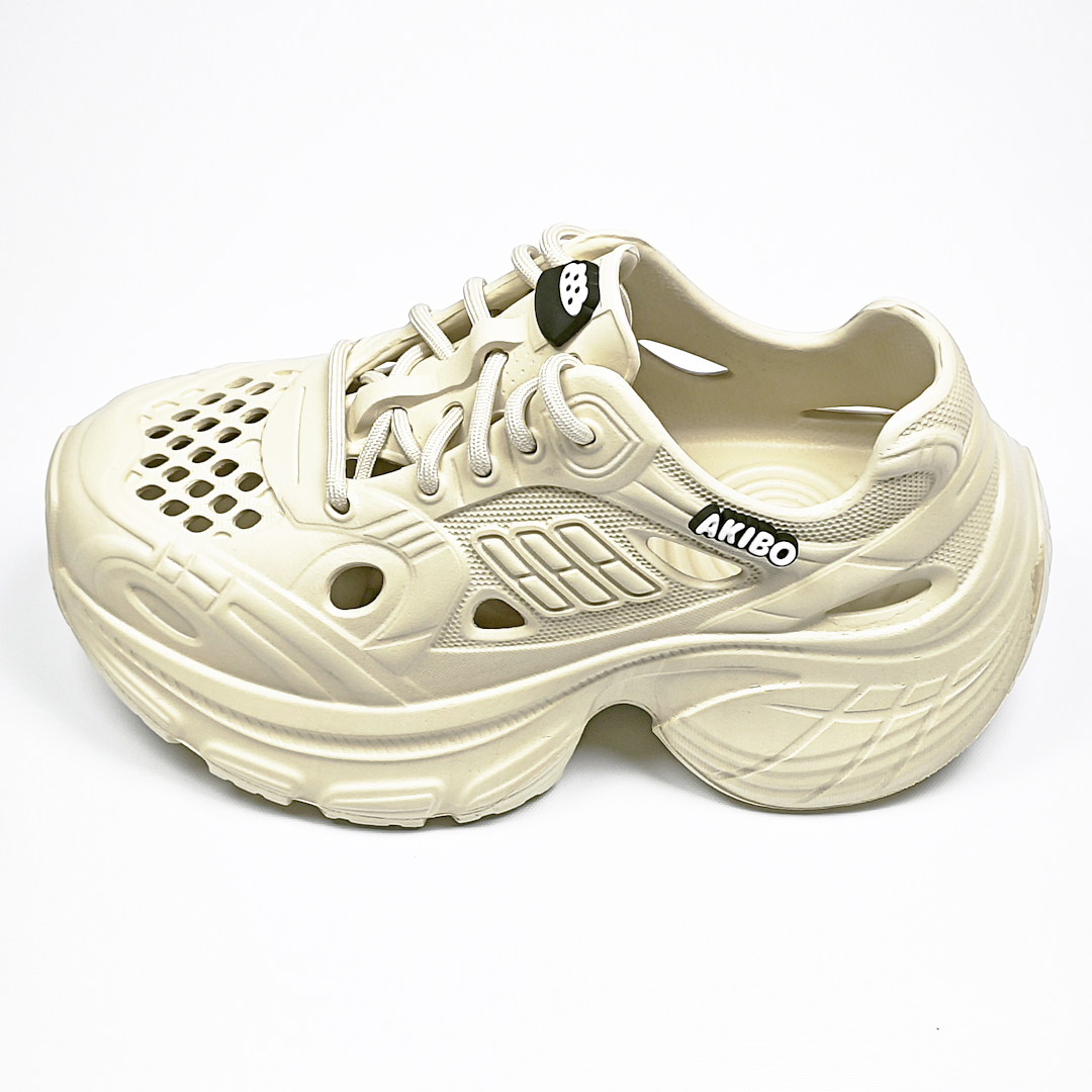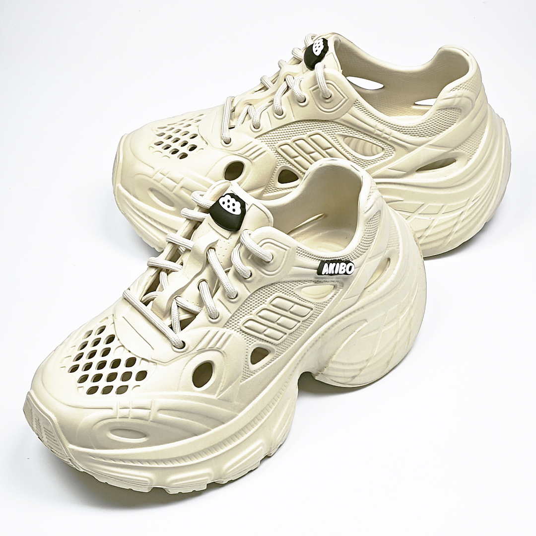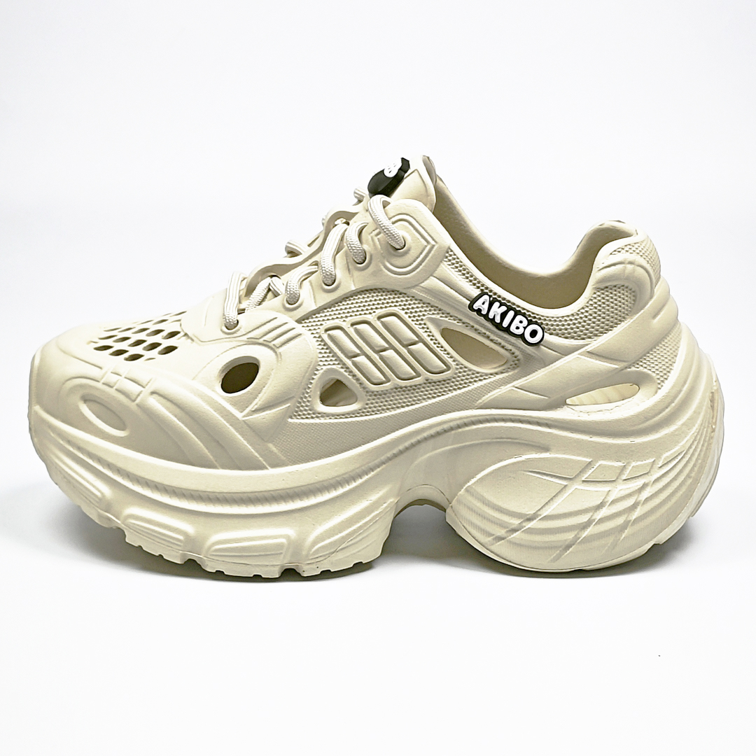 【買1送1】AKIBO輕量透氣老爹鞋-奶油白(女款、6公分厚底增高、一體成型、輕量、耐走、防水) / 內附AKIBO品牌鞋扣1個。現在買再送鞋扣組(不挑款)
