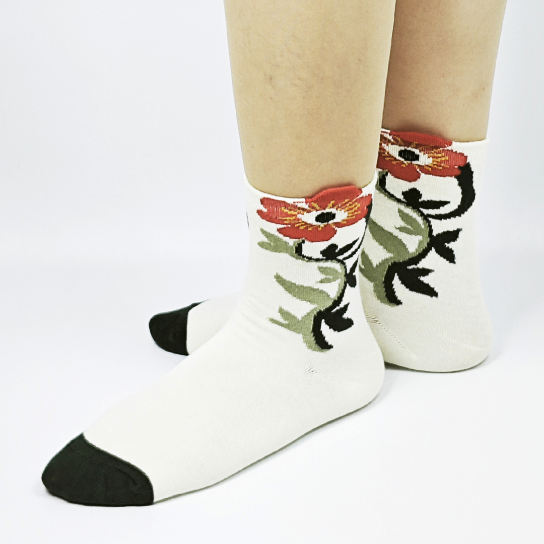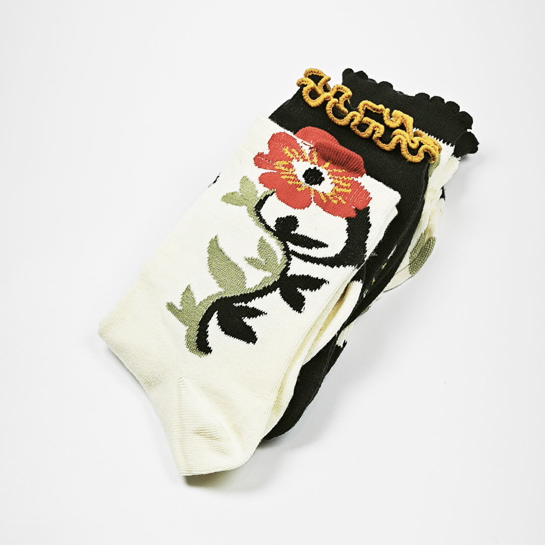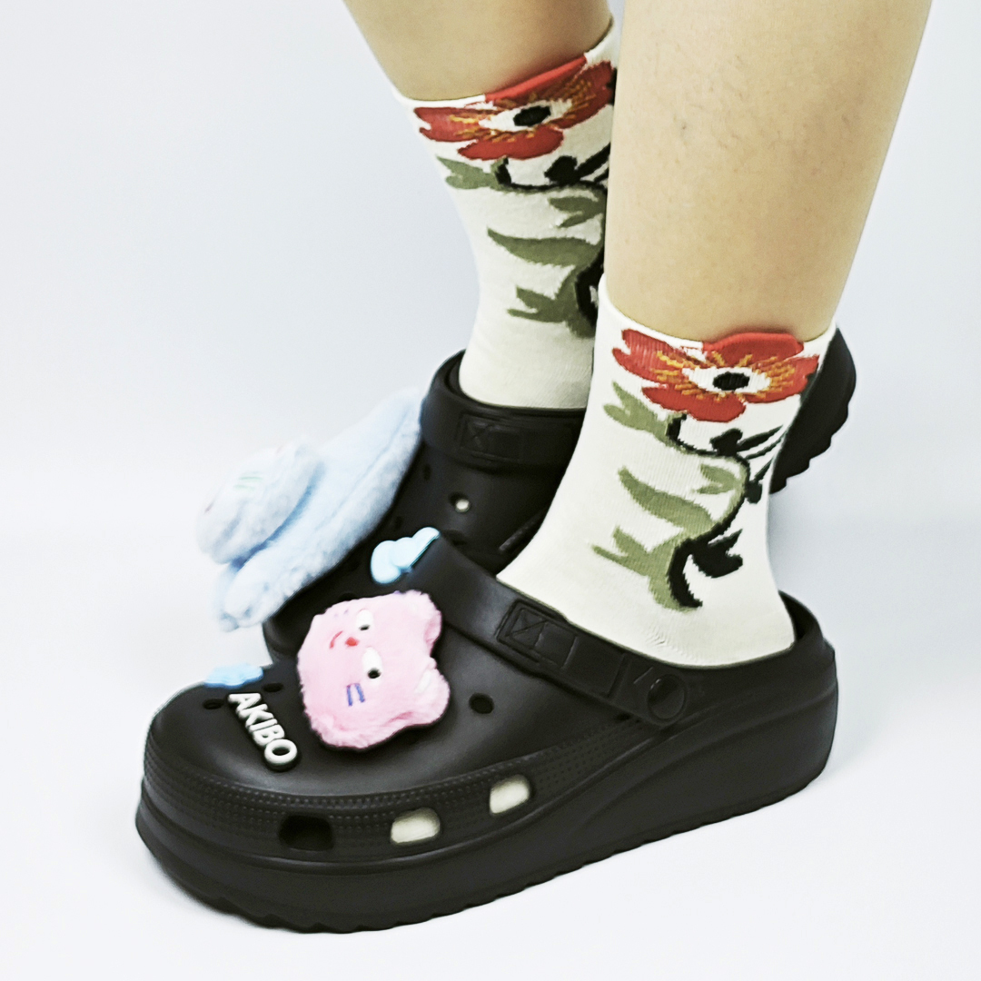 AKIBO森系春木花語中筒襪(三件組)-女款