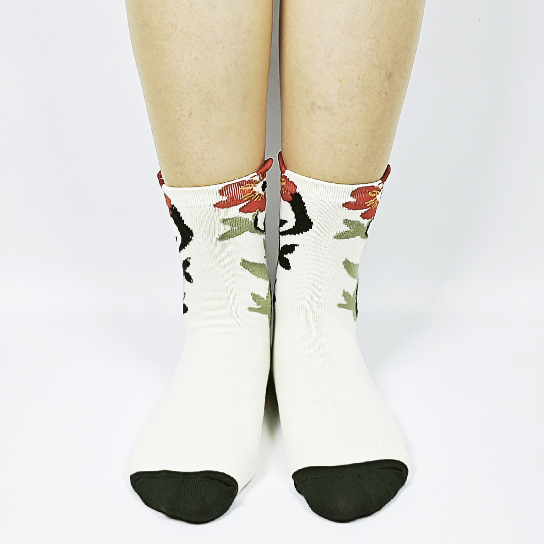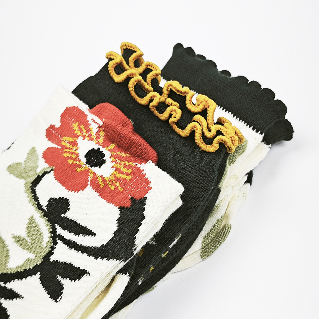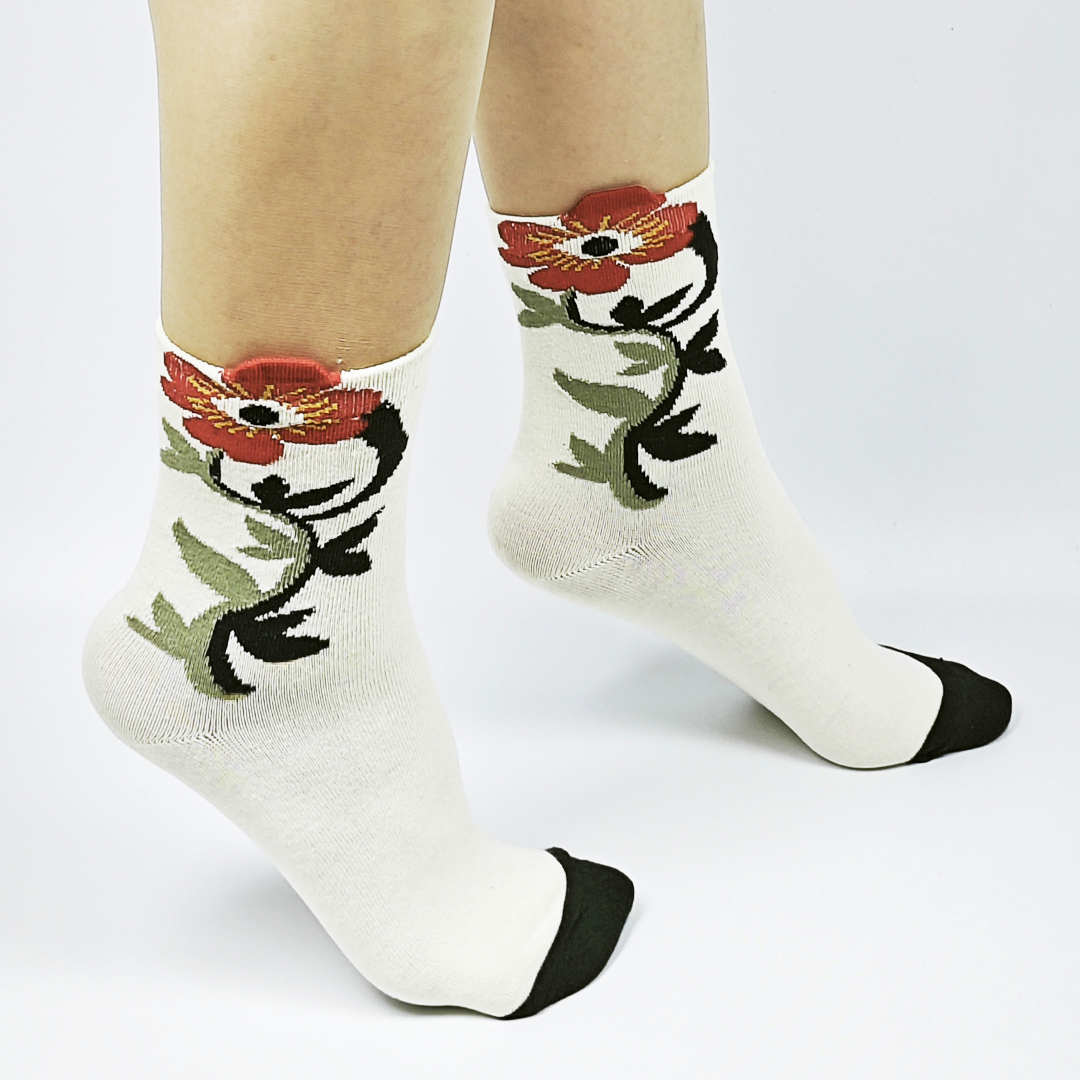 AKIBO森系春木花語中筒襪(三件組)-女款
