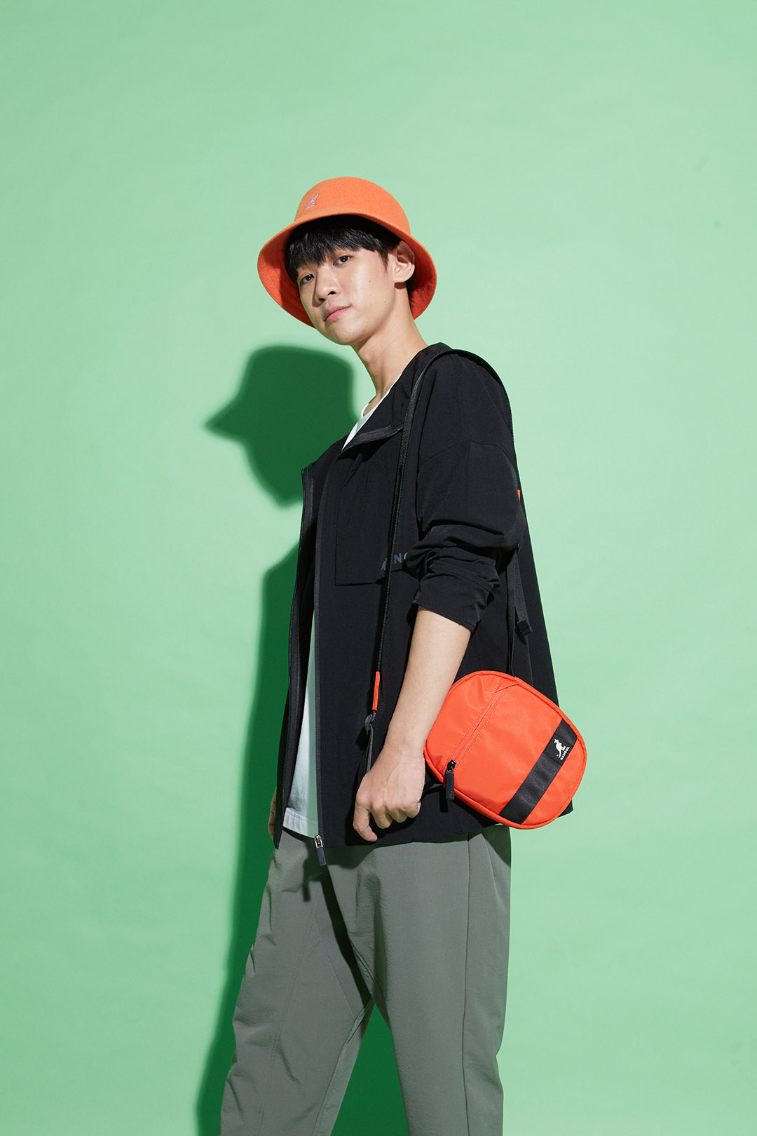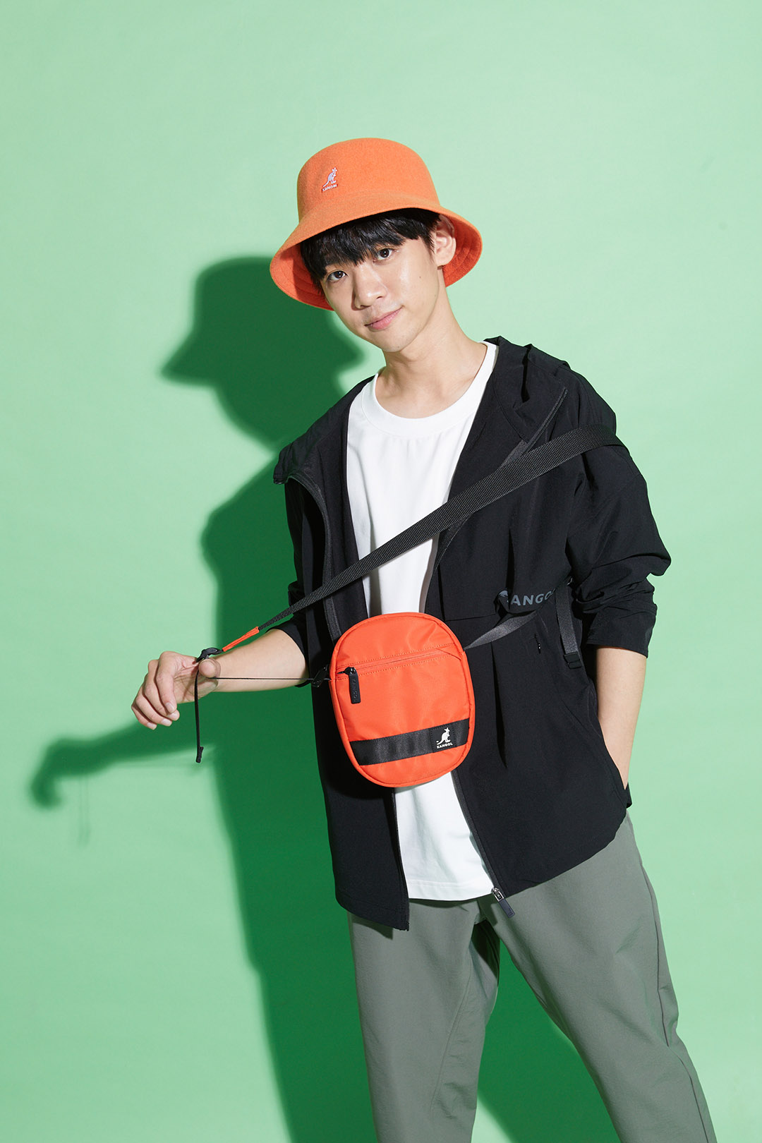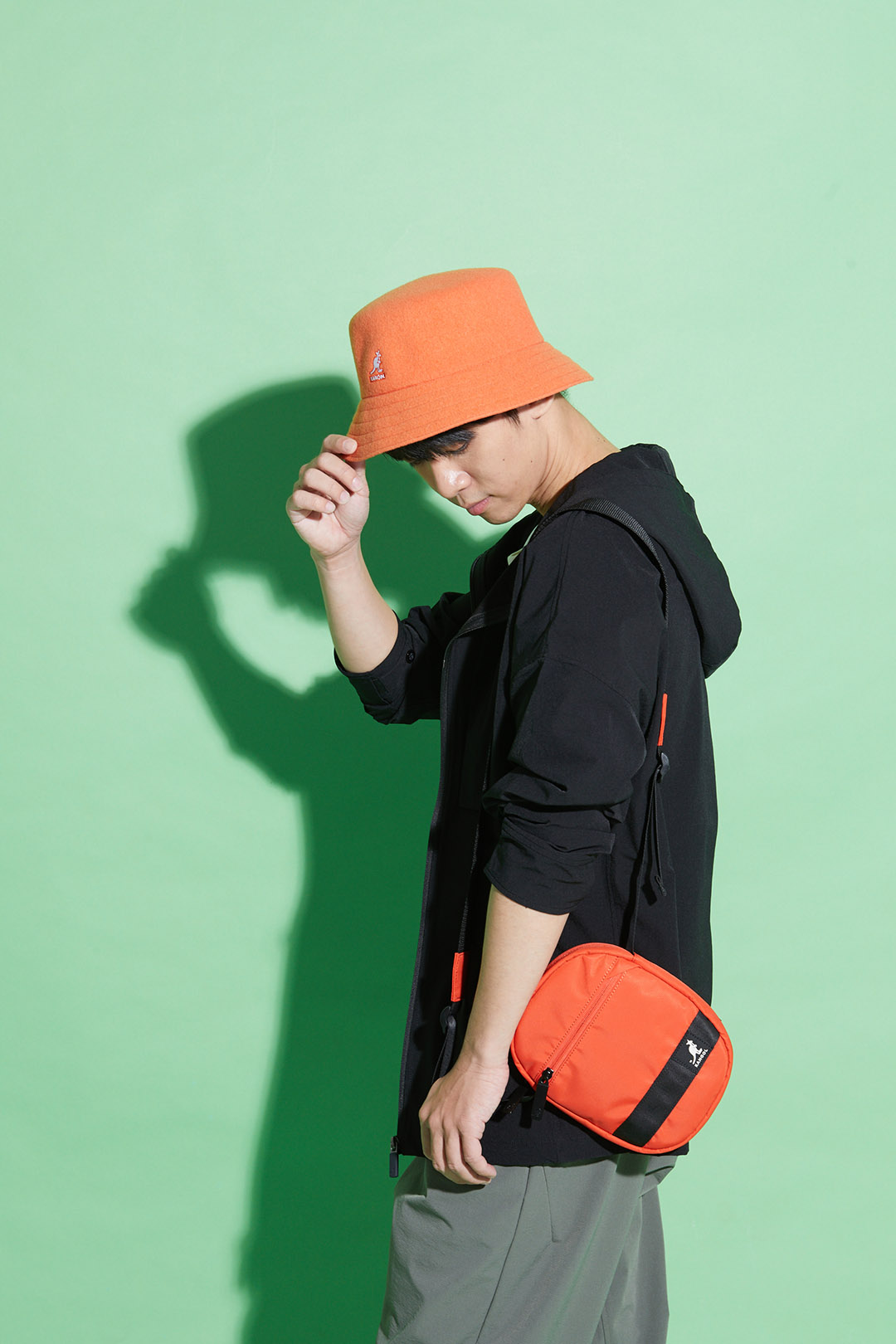 KANGOL袋鼠繽紛小側背-橘