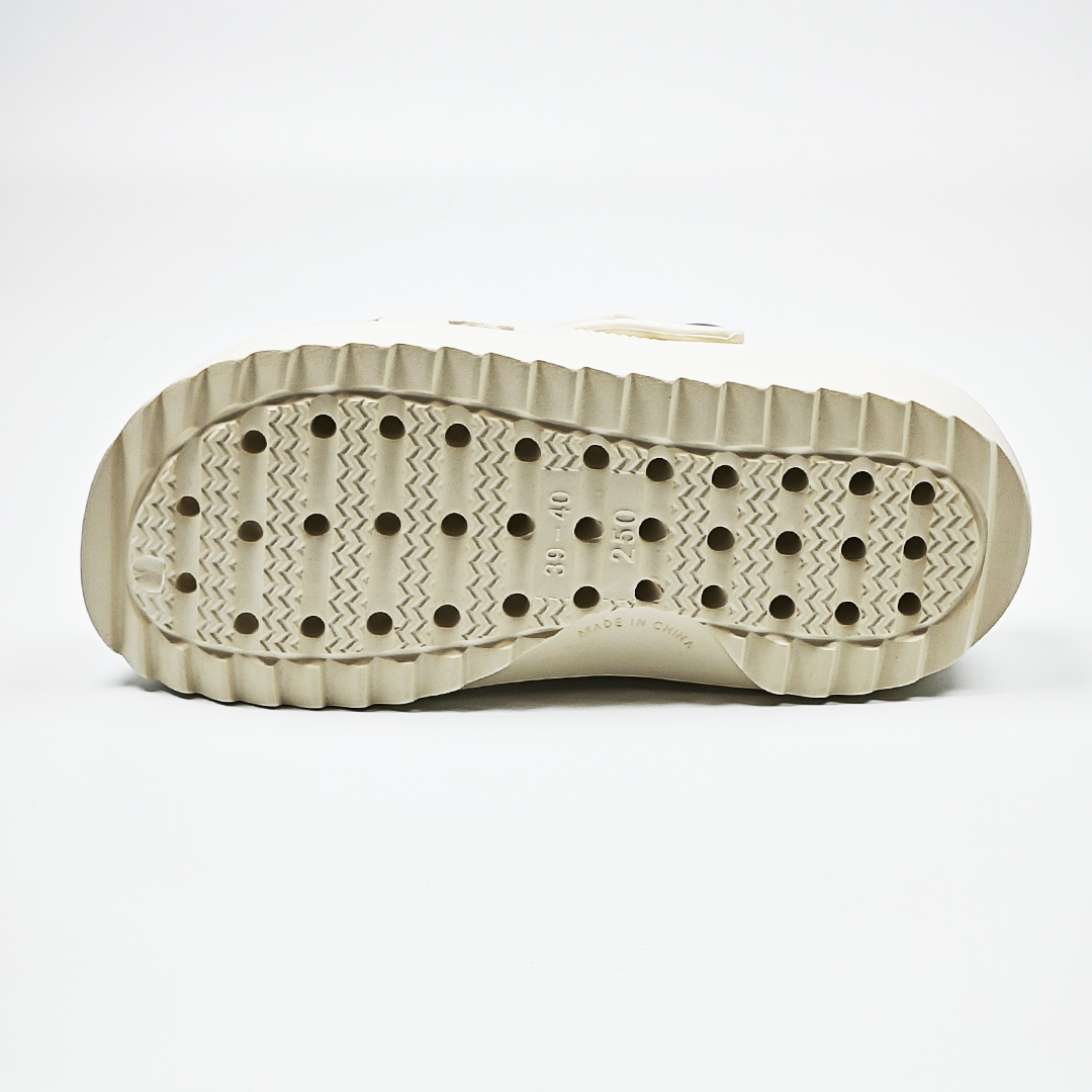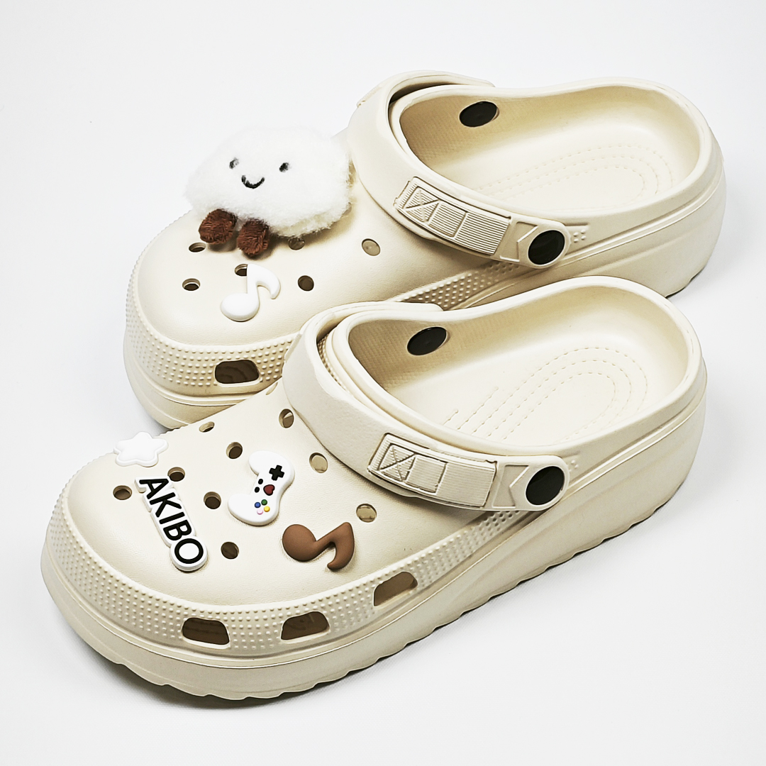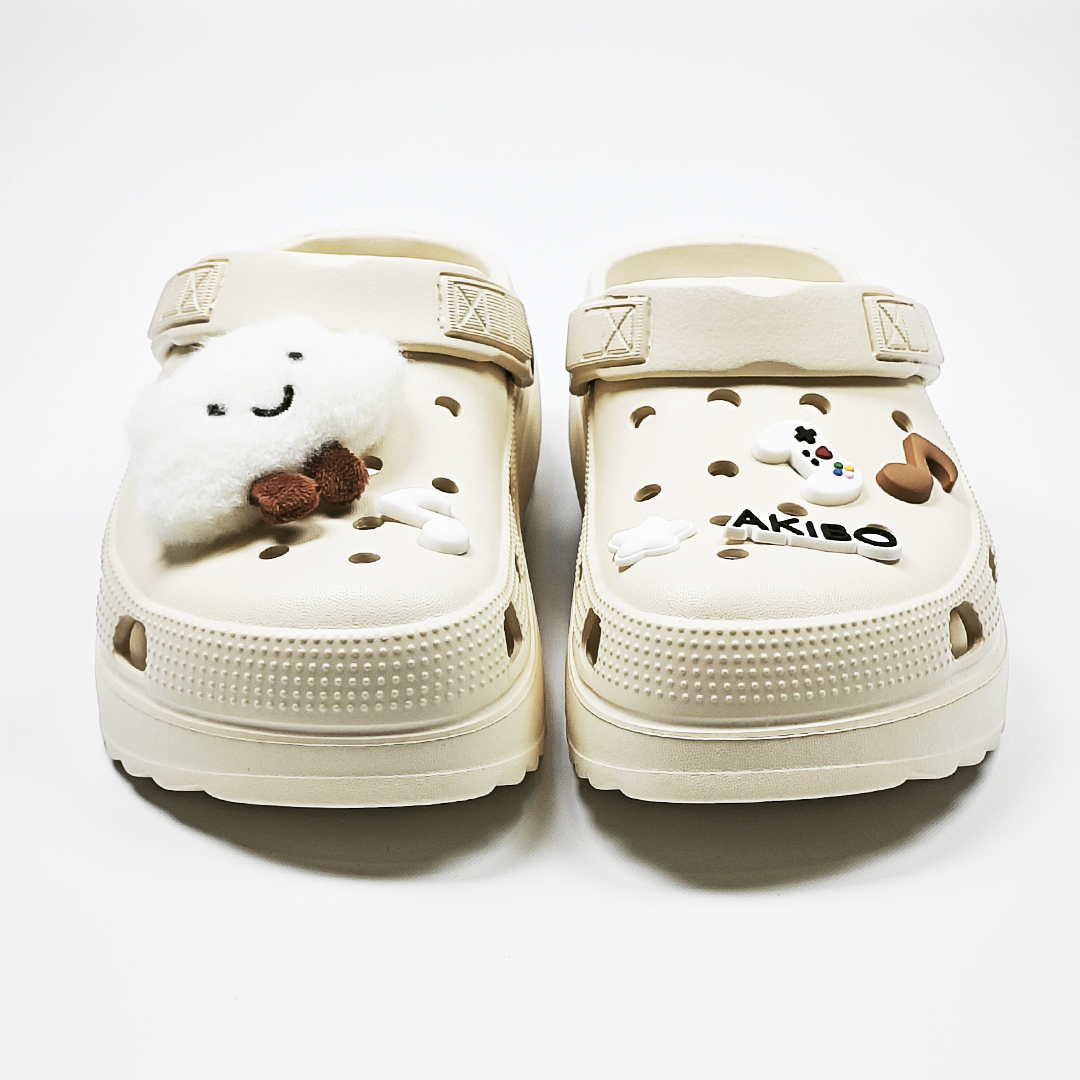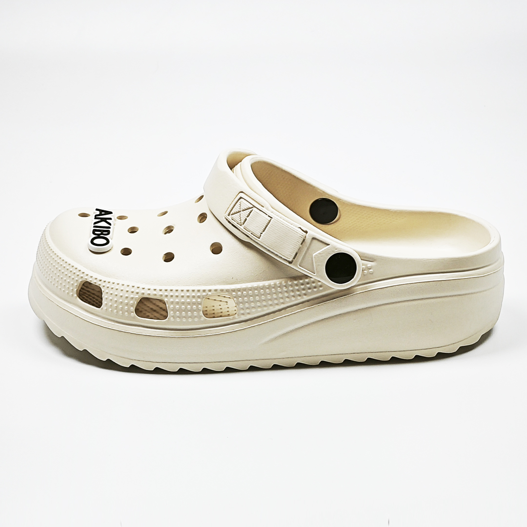 【買1送1】AKIBO極簡厚底洞洞鞋-奶油白(女款、寬楦、耐走、兩穿、防水) / 內附AKIBO品牌鞋扣1個。現在買再送鞋扣組(不挑款)