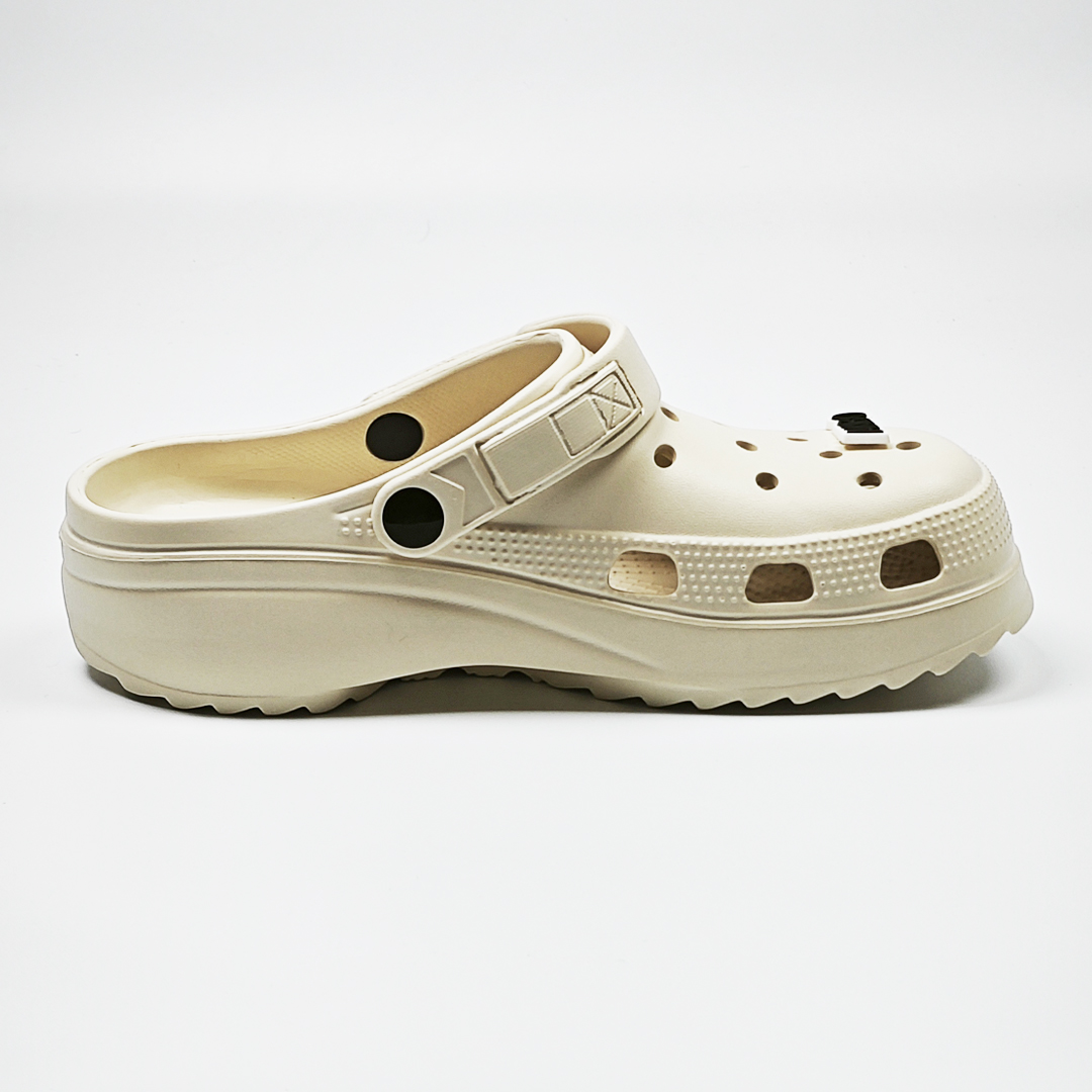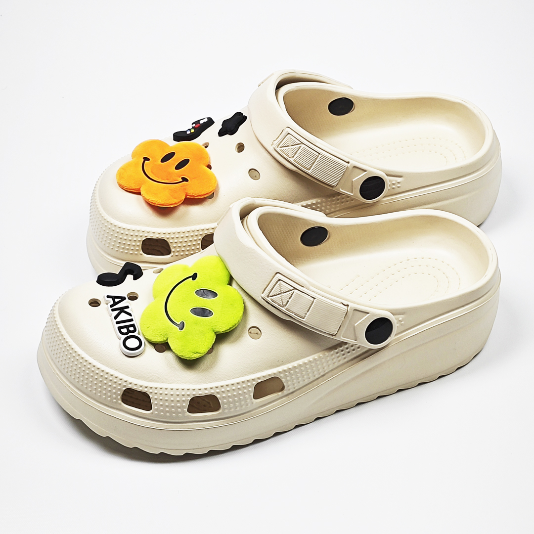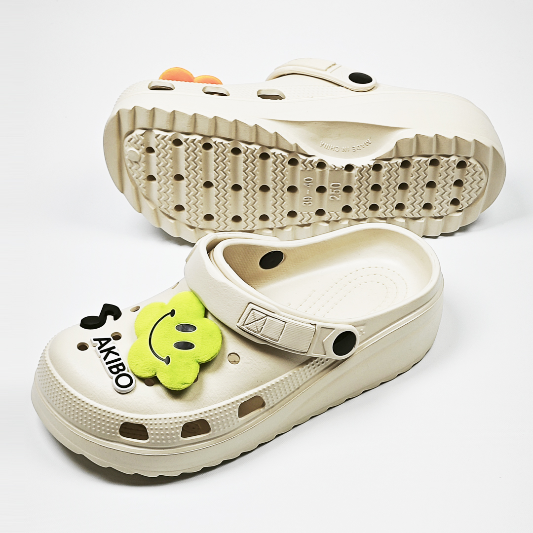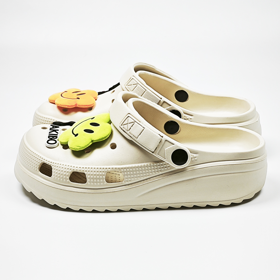 【買1送1】AKIBO極簡厚底洞洞鞋-奶油白(女款、寬楦、耐走、兩穿、防水) / 內附AKIBO品牌鞋扣1個。現在買再送鞋扣組(不挑款)