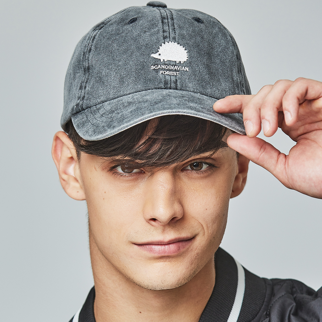 SCANDINAVIAN FOREST北歐小刺蝟水洗刺繡復古經典老帽-水洗黑