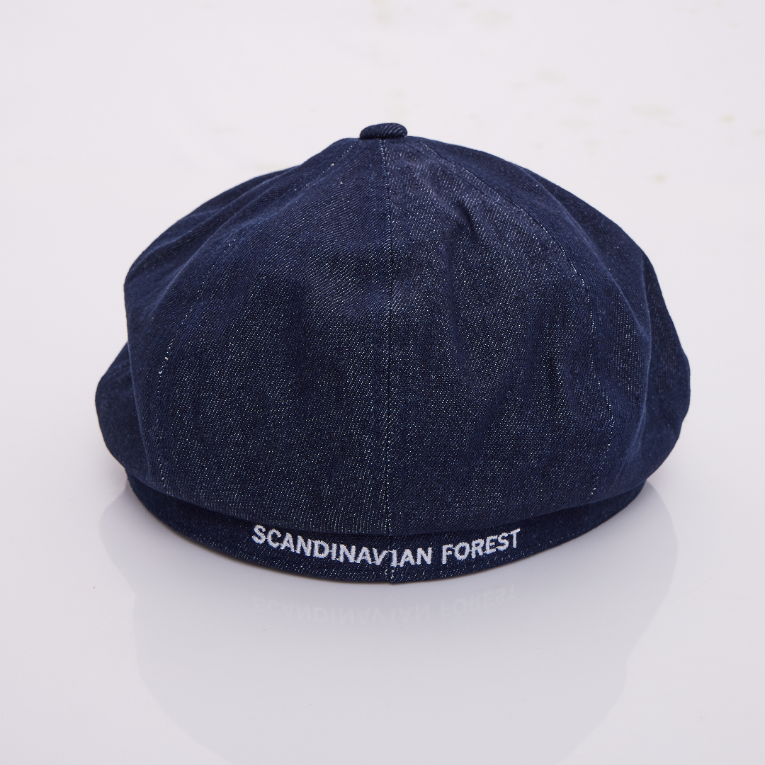 SCANDINAVIAN FOREST北歐小刺蝟水洗刺繡丹寧報童帽-水洗牛仔藍