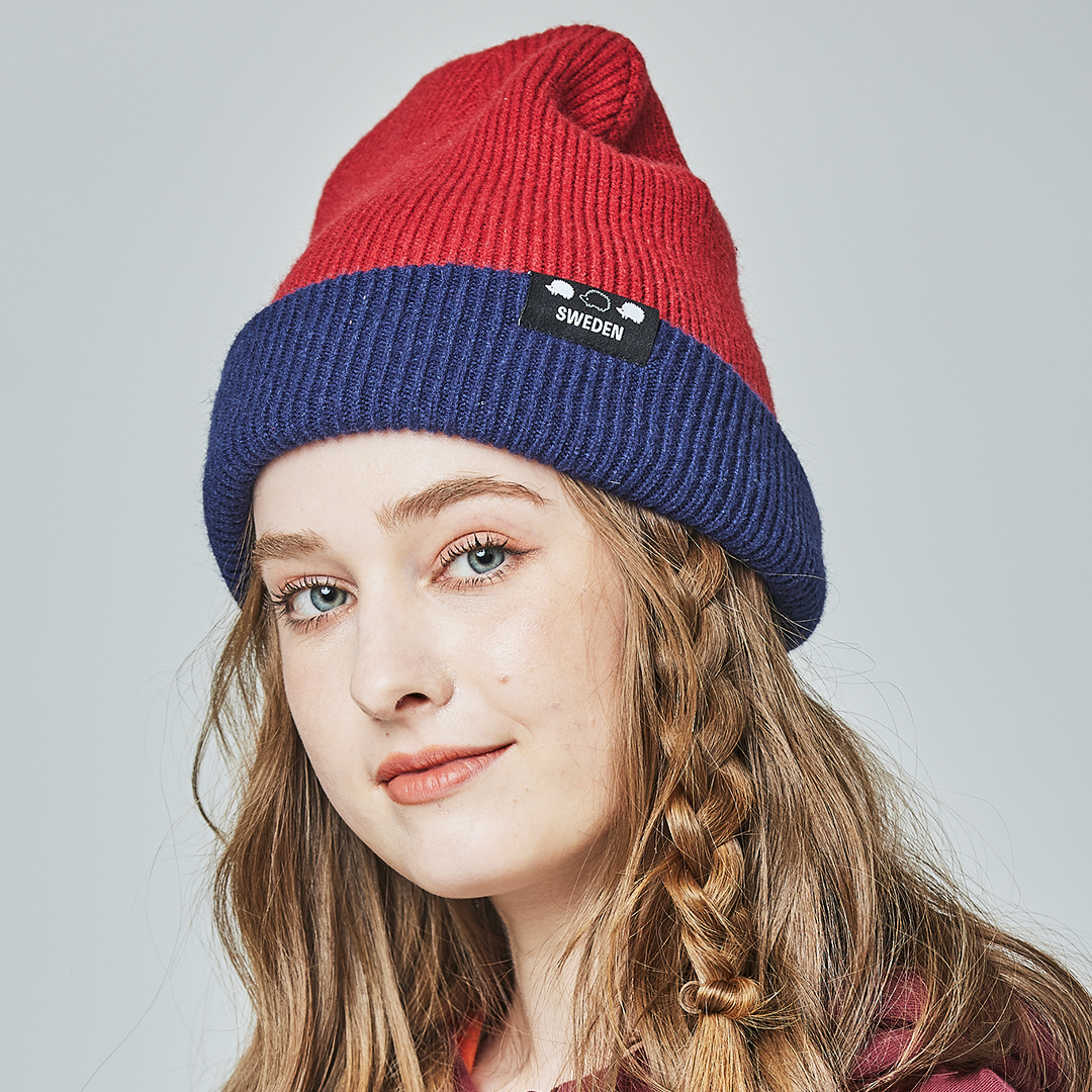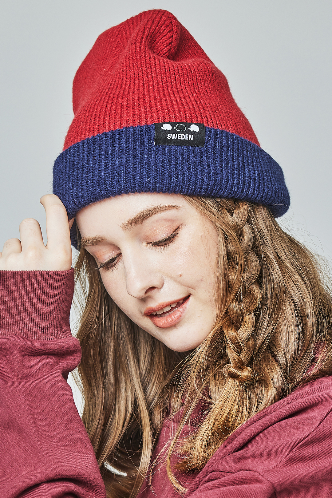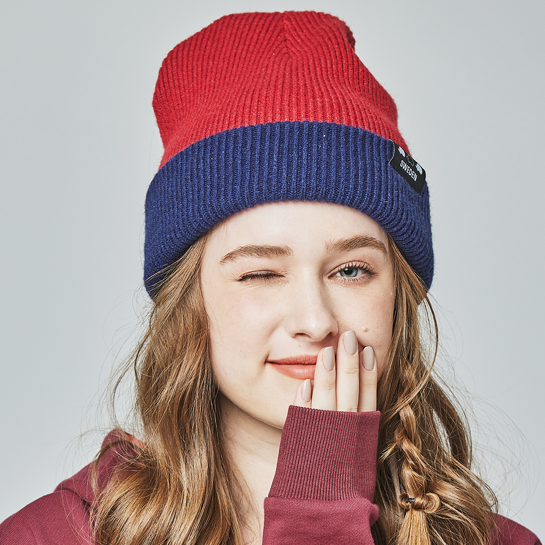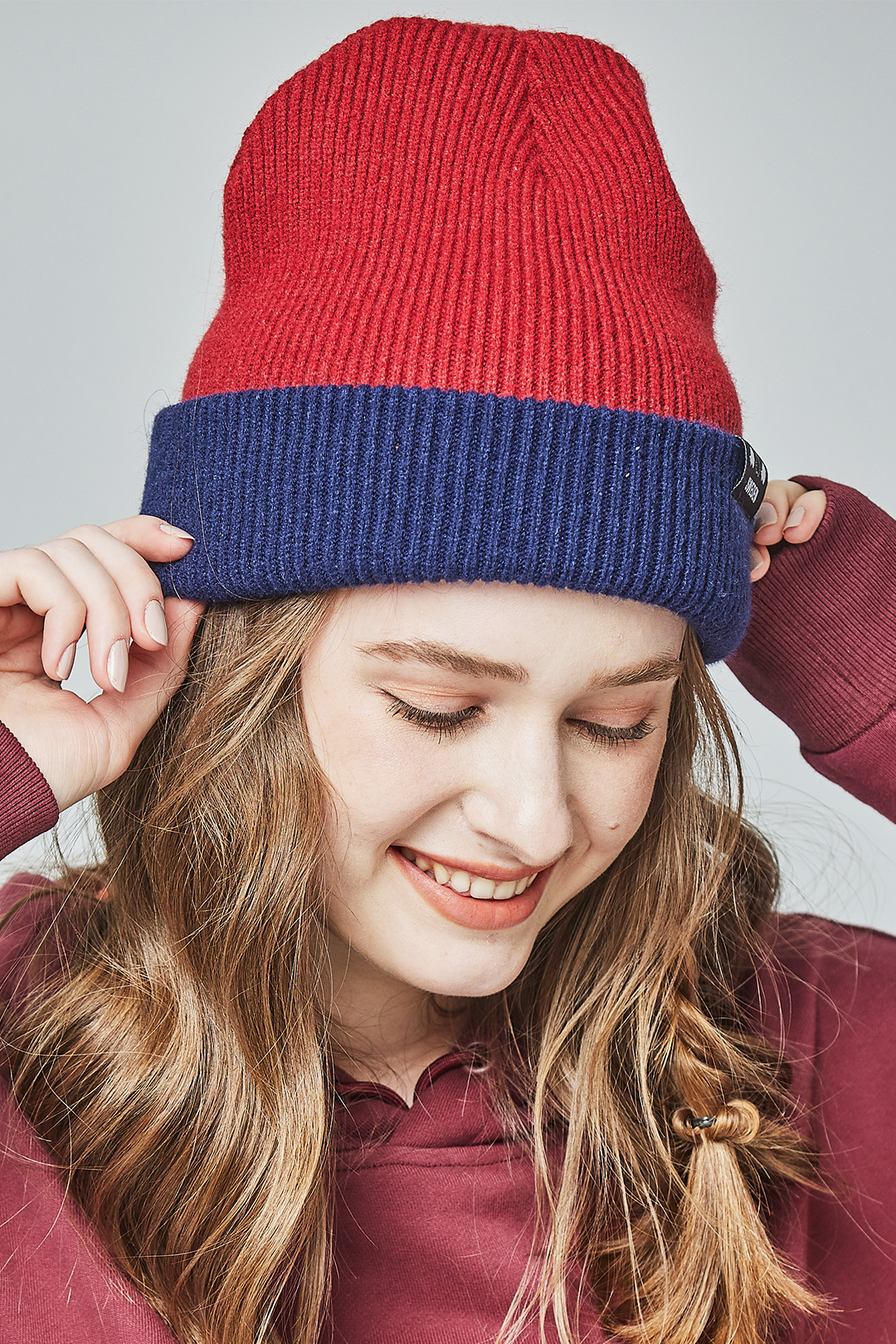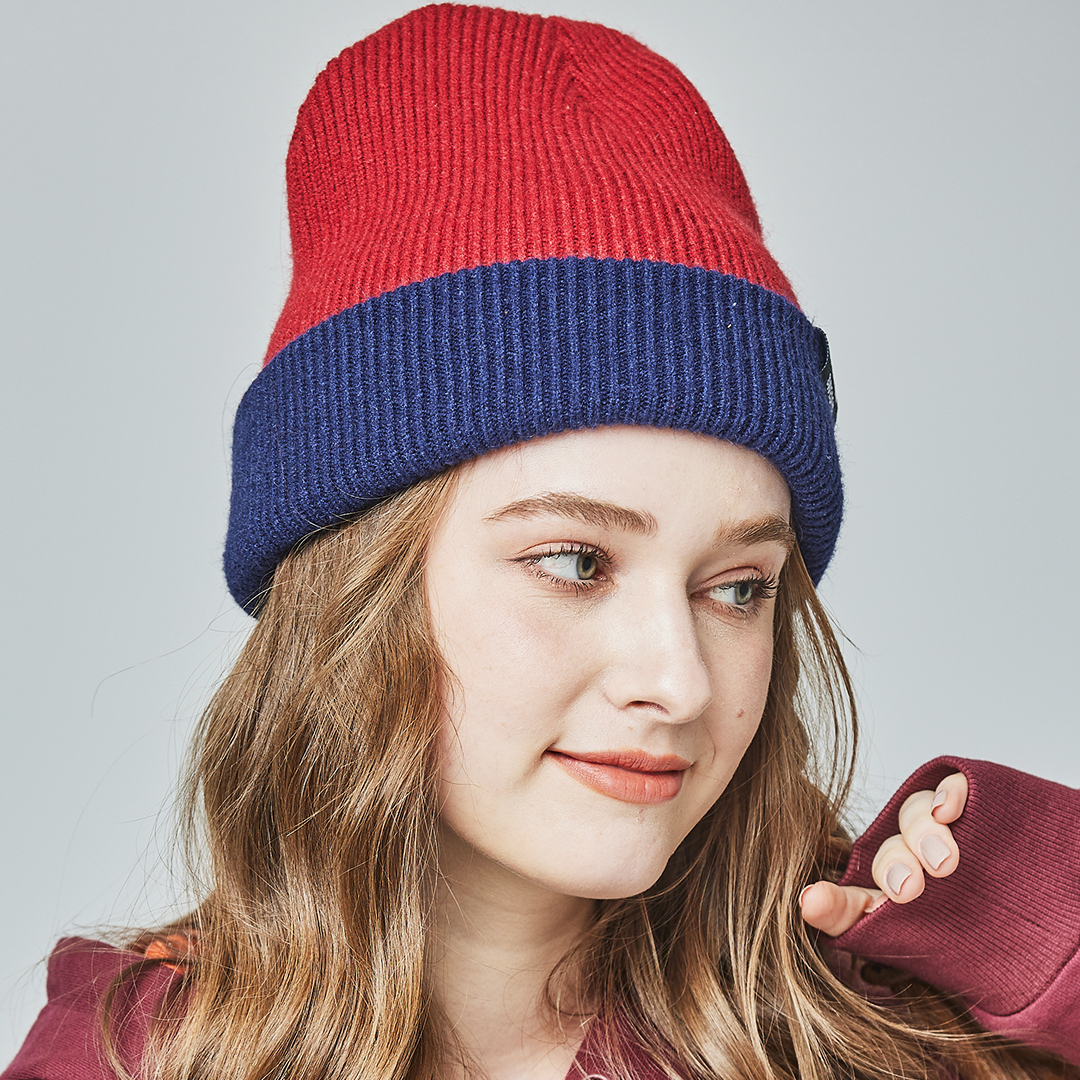 雙色設計-一面酒紅色一面深藍色與反摺搭配出4種戴法。