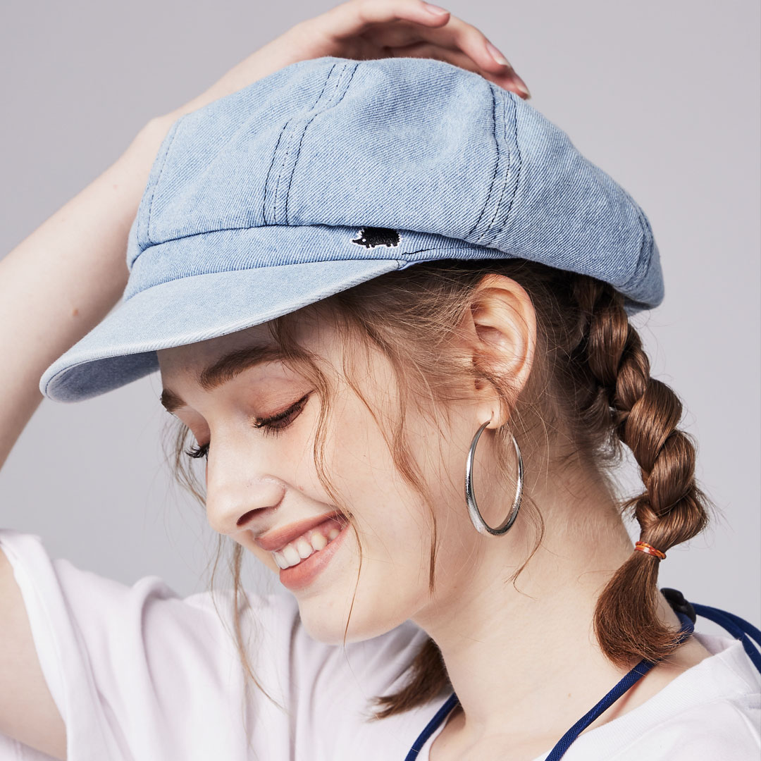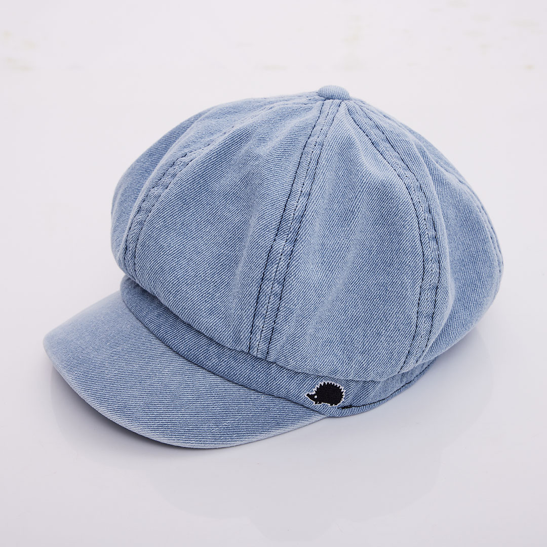 SCANDINAVIAN FOREST北歐小刺蝟水洗刺繡丹寧報童帽-水洗牛仔藍